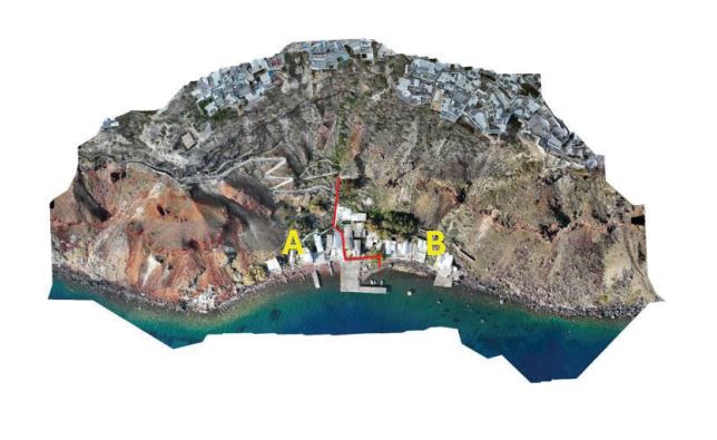 Κατ’ εξαίρεση αποκλειστικά και μόνο σε συγκεκριμένο σημείο (Περιοχή Α) της περιοχής επιτρέπεται η πρόσβαση και παραμονή συνεργείων επισκευών και συντήρησης υποδομών, δικτύων και επαγγελματικών χώρων που βρίσκονται εντός της ανωτέρω περιοχής με τη λήψη των ενδεδειγμένων μέτρων ασφαλείας. Η από θαλάσσης πρόσβαση με οιοδήποτε τύπου πλοίο και πλωτό ναυπήγημα, θα επιτρέπεται μόνον κατόπιν εγκρίσεως της Λιμενικής Αρχής Θήρας. Στην περιοχή Β απαγορεύεται κάθε μορφής πρόσβαση και παραμονή.