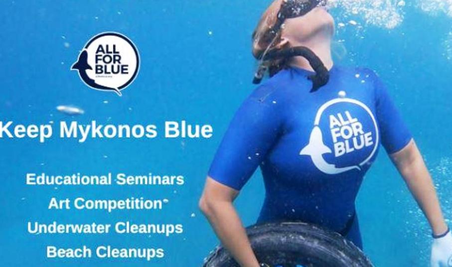 Η All For Blue είναι ένας ελληνικός Περιβαλλοντικός Οργανισμός, που ιδρύθηκε επίσημα το 2017 από την πρωταθλήτρια υποβρυχίων δραστηριοτήτων, Κατερίνα Τοπούζογλου και υλοποιεί διεθνείς δράσεις, εκπαιδευτικού χαρακτήρα.