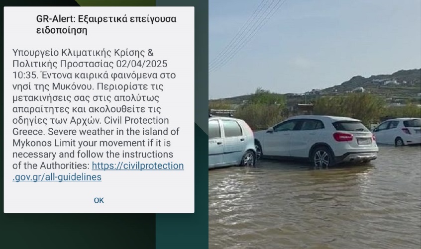 Πολιτική Προστασία: Νέα έκτακτη ειδοποίηση για τη Μύκονο λόγω κακοκαιρίας