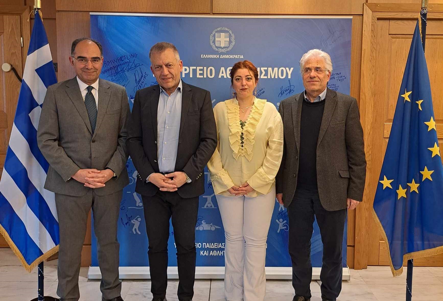 Με επίκεντρο θέματα που αφορούν τις αθλητικές υποδομές της Πάρου, αλλά και τις προτεραιότητες που έχει θέσει το Δημοτικό Συμβούλιο με ομόφωνη απόφαση τον Δεκέμβριο του 2024, πραγματοποιήθηκε χθες στο Υπουργείο Παιδείας, Θρησκευμάτων και Αθλητισμού, σύσκεψη εργασίας με τη συμμετοχή του υπουργού, Ιωάννης Βρούτσης, του δημάρχου Πάρου, Κώστα Μπιζά, της εντεταλμένης δημοτικής συμβούλου Αθλητισμού, Φλώρας Λουκή, του προέδρους της ΔΕΥΑΠ, Γιώργου Μπαφίτη και συνεργατών του υπουργού.
