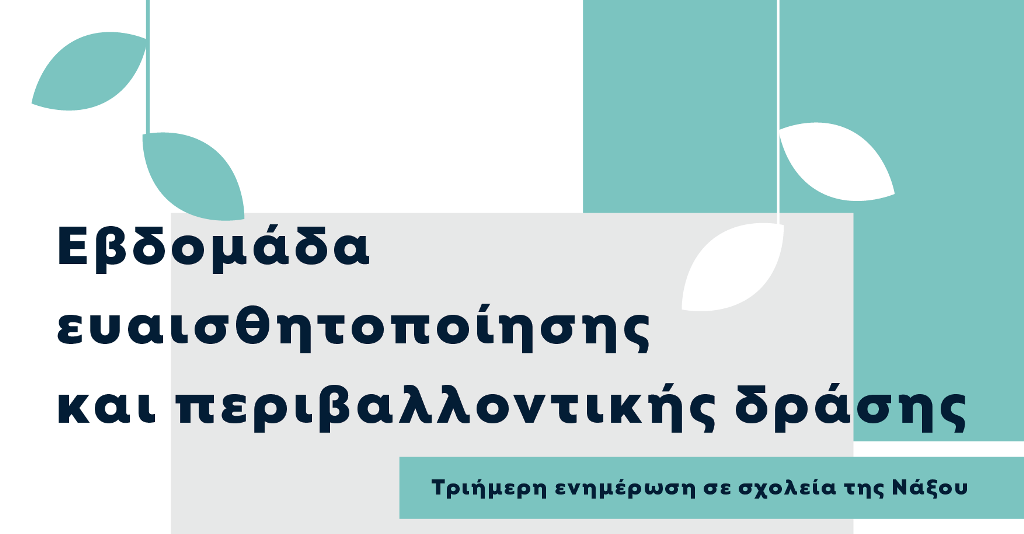 - Τριήμερη ενημέρωση σε σχολεία της Νάξου, με στόχο την εκπαίδευση των μαθητών σε ζητήματα περιβάλλοντος, βιώσιμων πρακτικών και ενεργής συμμετοχής.