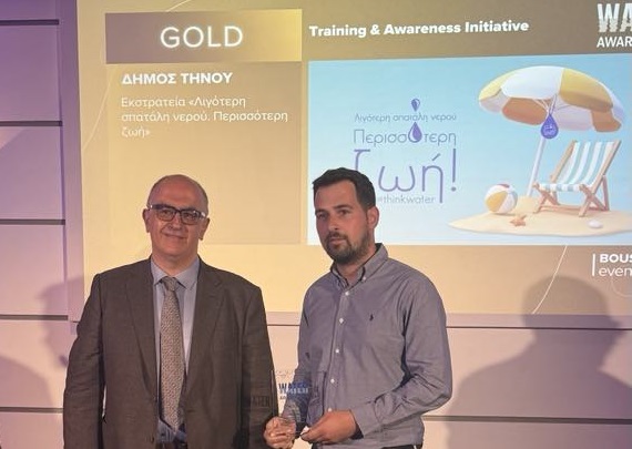 Ο Δήμος Τήνου τιμήθηκε με το Gold Award στην κατηγορία Water Sustainability / Training & Awareness Initiative στη διοργάνωση «Water Awards 2025»