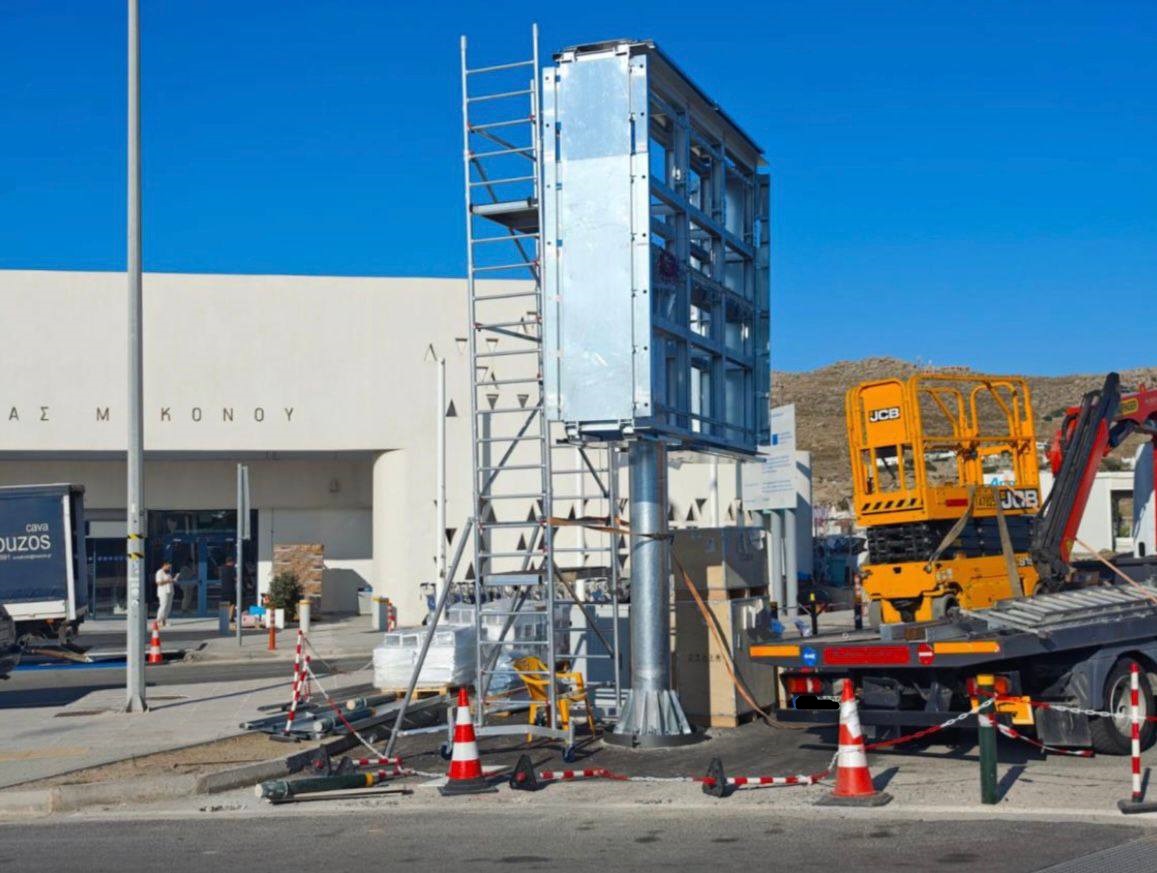 Ο Δήμος Μυκόνου αντιδρά έντονα στην αιφνιδιαστική έναρξη τοποθέτησης τεράστιων φωτιζόμενων διαφημιστικών πινακίδων έξω από το αεροδρόμιο του νησιού μας.