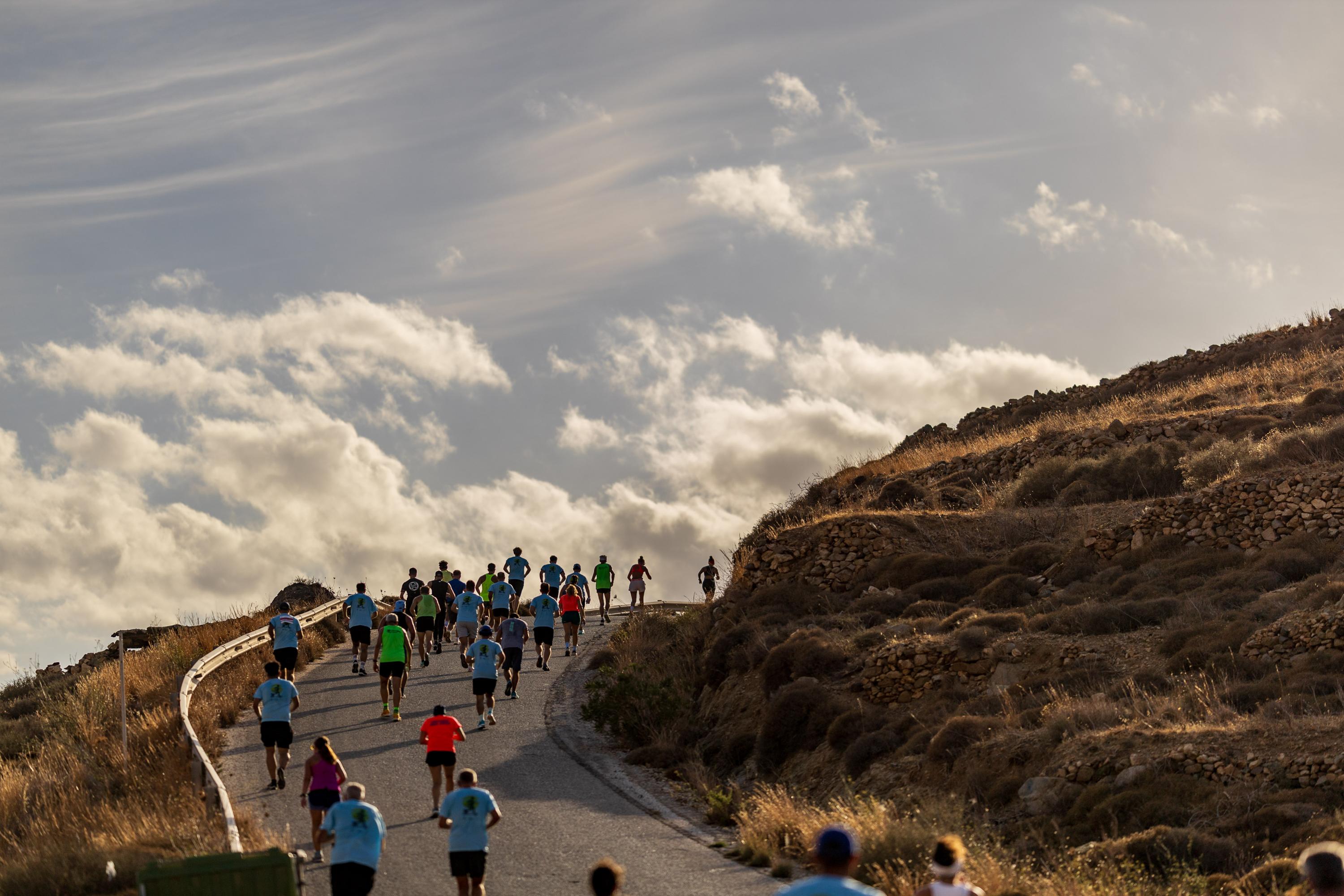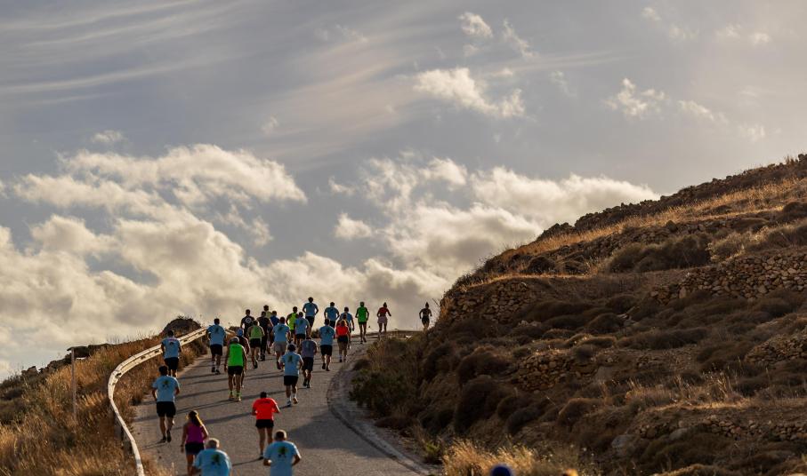 Οι δρομείς διασχίζουν τις παραλίες Βαγιά, Γάνεμα και Κουταλά, με το απέραντο γαλάζιο από τη μία πλευρά και το άγριο κυκλαδίτικο τοπίο από την άλλη.