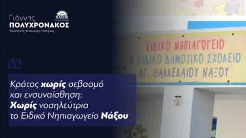Σε ένα υπαρκτό πρόβλημα λόγω έλλειψης προσωπικού στο Ειδικό Νηπιαγωγείο της Νάξου, αναφέρεται με δημόσια παρέμβαση του ο τομεάρχης Νησιωτικής Πολιτικής του ΠΑΣΟΚ κ. Γιάννης Πολυχρονακος.