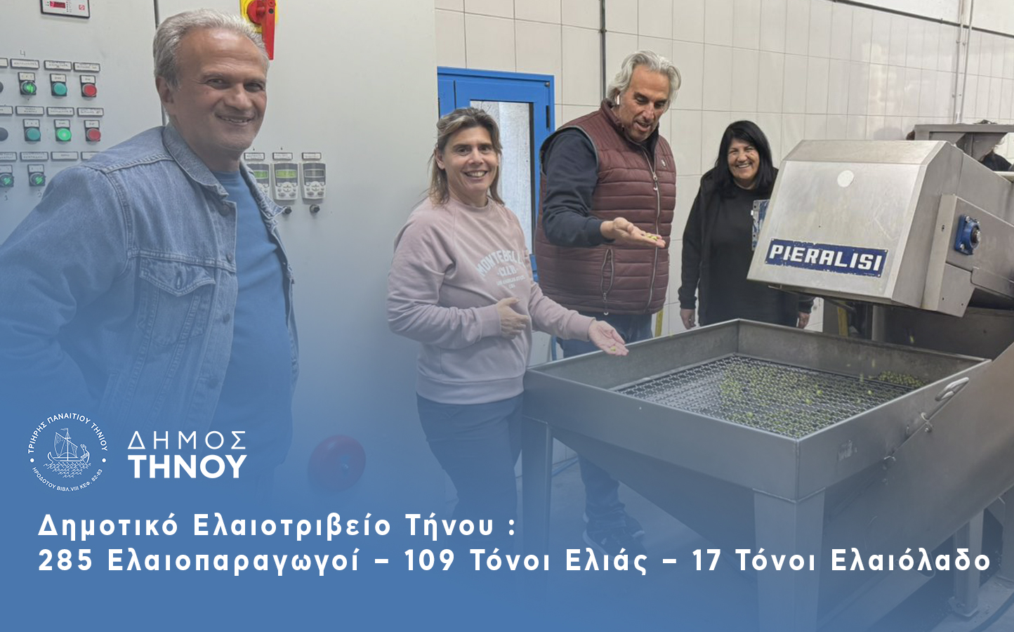 Δημοτικό Ελαιοτριβείο Τήνου: 285 ελαιοπαραγωγοί, 109 τόνοι ελιάς, 17 τόνοι ελαιόλαδο
