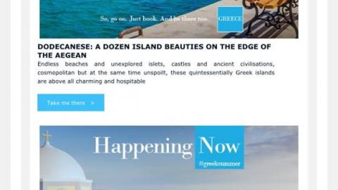 Στοχεύοντας στην αναθέρμανση του τουριστικού ρεύματος και την επέκταση των κρατήσεων από τέλη Αυγούστου και μετά, στις Κυκλάδες και τα Δωδεκάνησα, η Περιφέρεια Νοτίου Αιγαίου σε συνεργασία με την Marketing Greece, εφαρμόζει και εξειδικεύει την Εθνική Καμπάνια, “Happening Now in Dodecanese #greeksummer” και “Happening Now in Cyclades #greeksummer” με κύριες και πιο σημαντικές αγορές στόχους τη Γαλλία, τη Γερμανία και την Αγγλία.