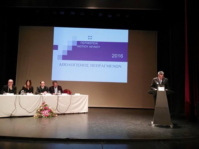 Ο απολογισμός της Περιφερειακής Αρχής για την ετήσια δράση της από 1 Ιανουαρίου έως και 31 Δεκεμβρίου του 2016 πραγματοποιείται απόψε στο πλαίσιο ειδικής συνεδρίασης του περιφερειακού συμβουλίου στην έδρα της Περιφέρειας, στη Σύρο.