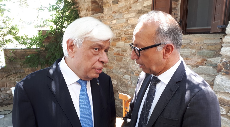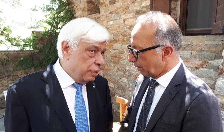 Το μεσημέρι, ο Αντιπεριφερειάρχης, εκπροσωπώντας την Περιφερειακή Αρχή Νοτίου Αιγαίου, καλωσόρισε τον κ. Παυλόπουλο στο ελικοδρόμιο του νησιού και τον συνόδευσε μαζί με εκπροσώπους τοπικών φορέων στο Δημοτικό Μουσείο όπου τον υποδέχθηκαν ο εικαστικός Κώστας Τσόκλης και η διευθύντρια του Μουσείου κα Χρυσάνθη Κουτσουράκη.