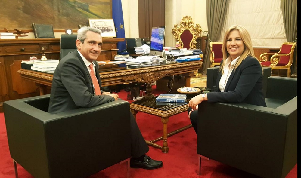 Την Πρόεδρο του ΠΑΣΟΚ και επικεφαλής της Δημοκρατικής Συμπαράταξης κα Φώφη Γεννηματά, υποδέχτηκε το βράδυ της Τετάρτης στο γραφείο του ο Περιφερειάρχης Νοτίου Αιγαίου, κ. Γιώργος Χατζημάρκος.