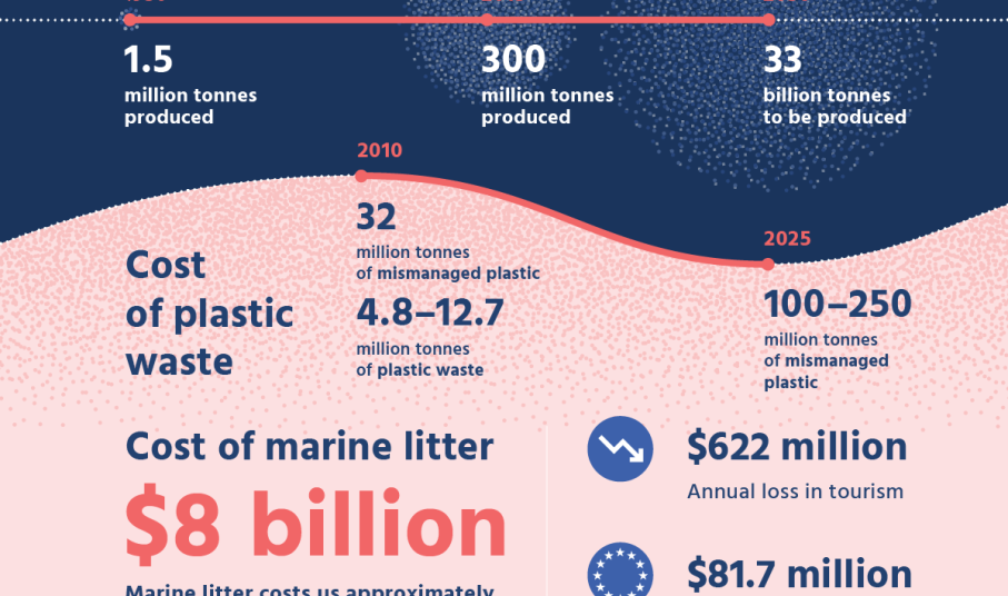 Η ρύπανση του θαλάσσιου περιβάλλοντος, ιδιαίτερα με πλαστικά, έχει λάβει ανησυχητικές διαστάσεις. Υπολογίζεται πως σε θάλασσες και ωκεανούς καταλήγουν κάθε χρόνο 8 εκατομμύρια τόνοι πλαστικών απορριμμάτων! Μια τεράστια απειλή για τους πληθυσμούς 600 ειδών θαλάσσιων οργανισμών, οι οποίοι τραυματίζονται ή πεθαίνουν επειδή παγιδεύονται σε αυτά ή τα τρώνε. Σημαντικές είναι και οι οικονομικές επιπτώσεις των απορριμμάτων σε παράκτιες περιοχές λόγω της αισθητικής ρύπανσης, της μειωμένης τουριστικής κίνησης, του κόστους καθαρισμού κ.ά.