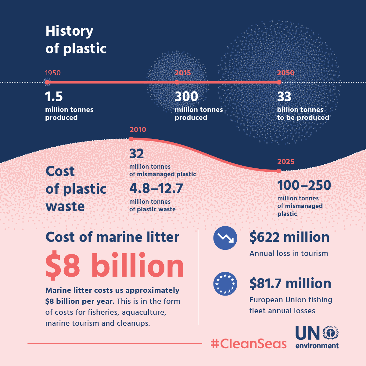 Η παγκόσμια εκστρατεία των Ηνωμένων Εθνών για τα θαλάσσια απορρίμματα με τίτλο «Καθαρές Θάλασσες» (Clean Seas Campaign), ξεκίνησε επίσημα την 23 Φεβρουαρίου στο Παγκόσμιο Συνέδριο για τους Ωκεανούς, στο Μπαλί της Ινδονησίας, και αποτελεί μέρος της πρωτοβουλίας για την επίτευξη των Στόχων του ΟΗΕ για τη Βιώσιμη Ανάπτυξη και συγκεκριμένα του Στόχου 14.1: «Μέχρι το 2025, να έχει επιτευχθεί πρόληψη και σημαντική μείωση της θαλάσσιας ρύπανσης και ειδικά αυτής που προέρχεται από δραστηριότητες στην ξηρά, συμπεριλαμβανομένων των θαλάσσιων απορριμμάτων και του ευτροφισμού».