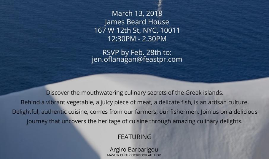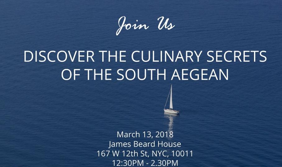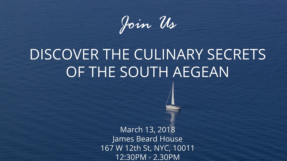 Στον ναό της Γαστρονομίας των ΗΠΑ, το James Beard Foundation, στη Νέα Υόρκη, η Περιφέρεια Νοτίου Αιγαίου, Γαστρονομική Περιφέρεια της Ευρώπης 2019, παρουσιάζει για δεύτερη συνεχόμενη χρονιά τα μυστικά της γαστρονομικής παράδοσης του Νοτίου Αιγαίου, την Τρίτη 13 Μαρτίου 2018.