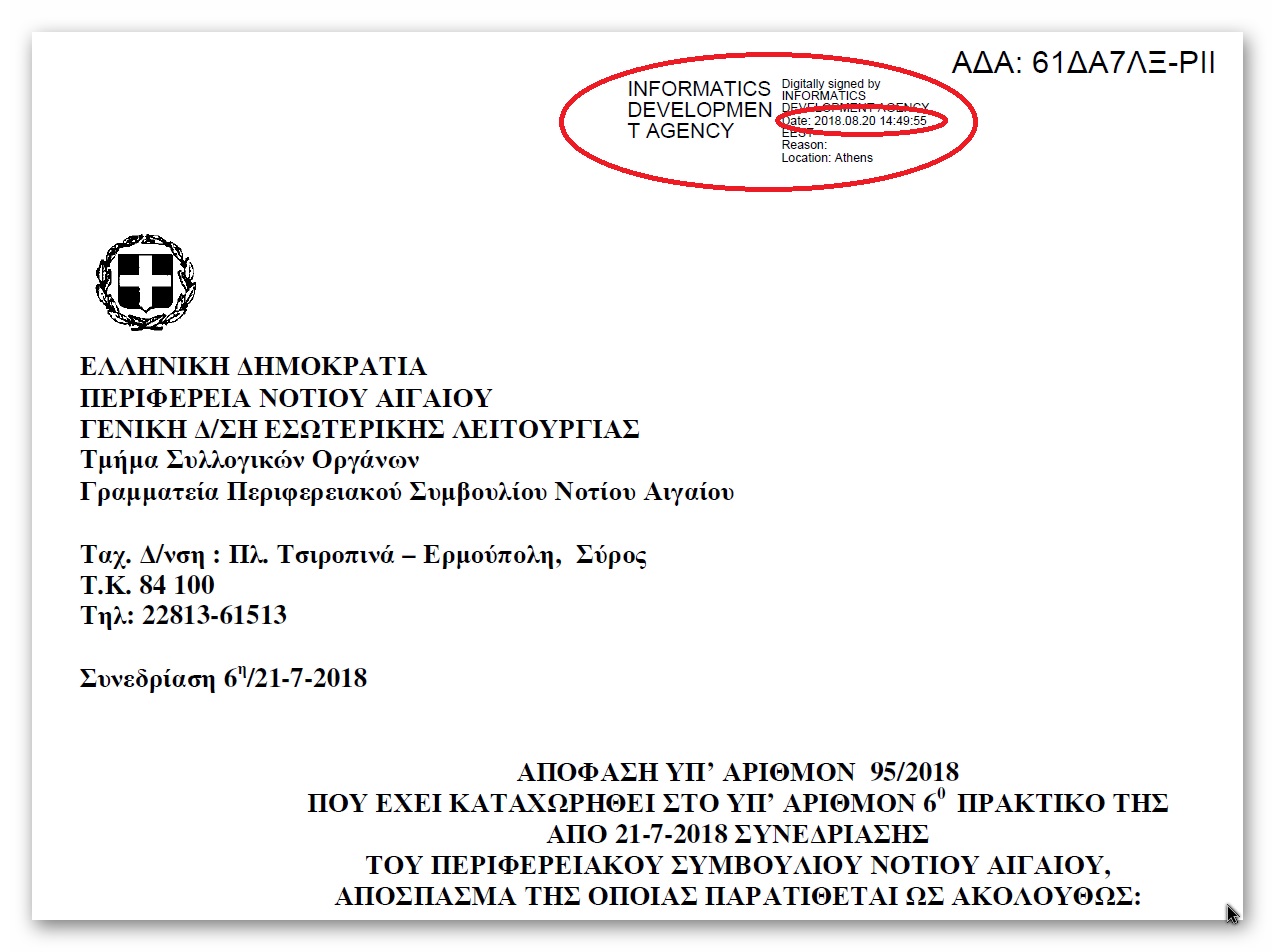 Εκτέθηκε όμως από την ανάρτηση σε ΑΔΑ της συγκεκριμένης απόφασης, διότι η πρώτη δημοσιοποίησή της πραγματοποιήθηκε:
