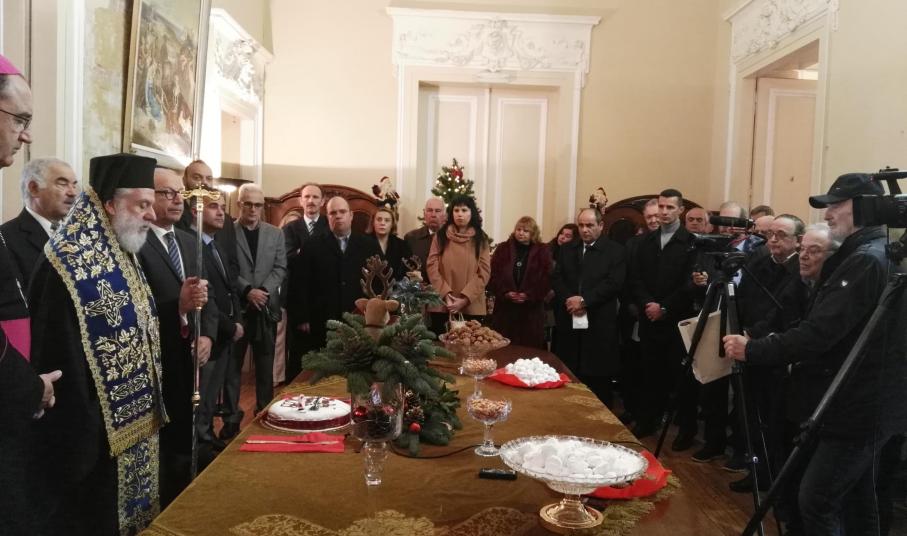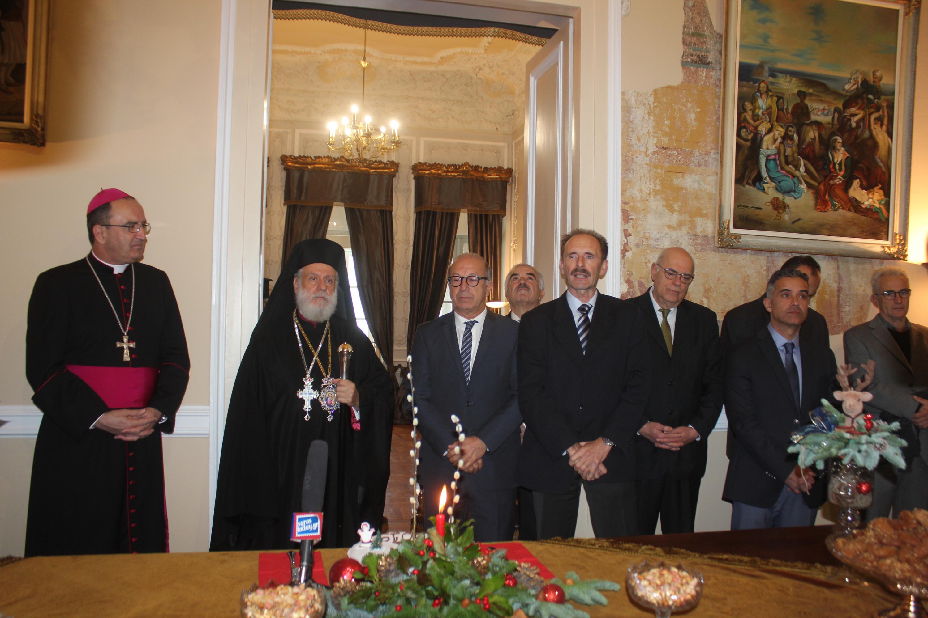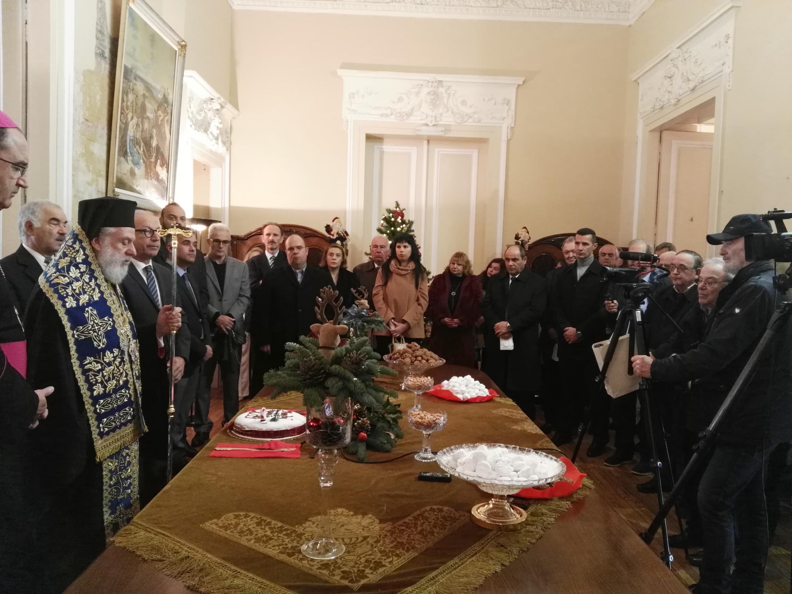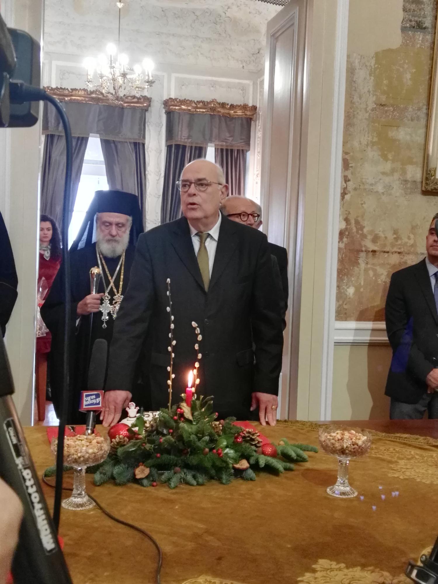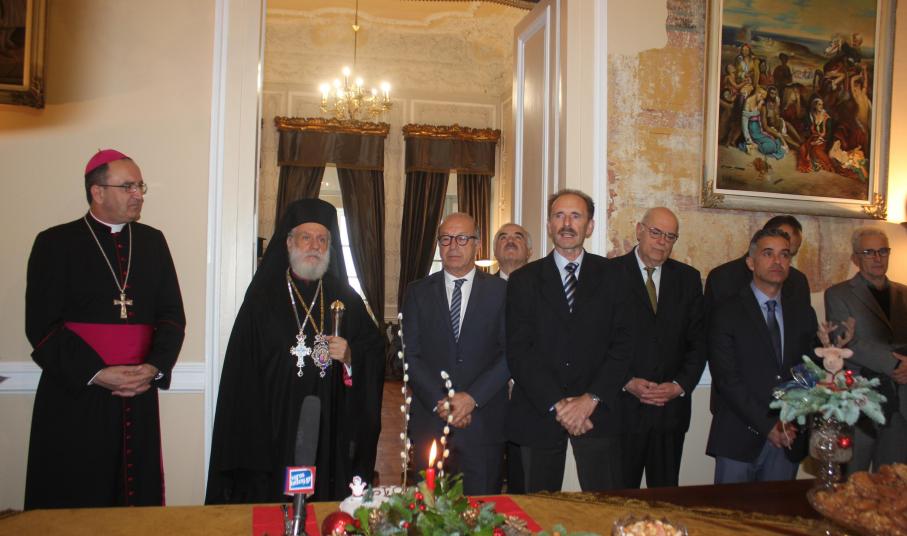Αμέσως μετά την τέλεση της καθιερωμένης Δοξολογίας στον Ι.Ν. του Αγίου Νικολάου στην Ερμούπολη, οι αιρετοί εκπρόσωποι της ΠΝΑι και του Δήμου Σύρου - Ερμούπολης ανταποκρίθηκαν στο κάλεσμα της Περιφερειακής Αρχής ώστε να συνεορτάσουν στην άφιξη του 2019.