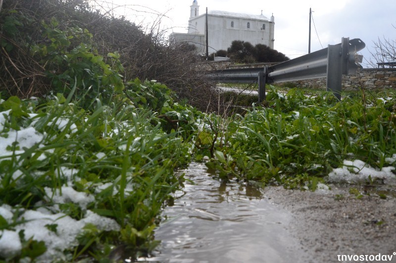 Η Άνδρος ντύθηκε στα λευκά. Συνεχείς επεμβάσεις για διάνοιξη δρόμων στα ορεινά