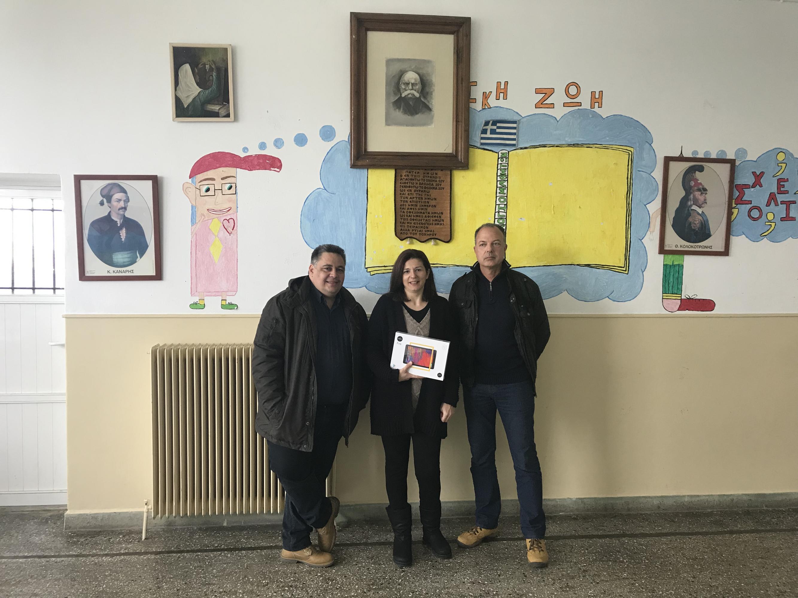 Η δωρεά του Κληροδοτήματος Πέτρου Λ. Μουστάκα αφορά στην προμήθεια τεχνολογικού εξοπλισμού για τις ανάγκες του σχολείου και συγκεκριμένα (11) έντεκα tablet ένα για κάθε μαθητή, (1) ένα Laptop για τον δάσκαλο και (1) ένα πολυμηχάνημα εκτυπωτής, fax, scanner.