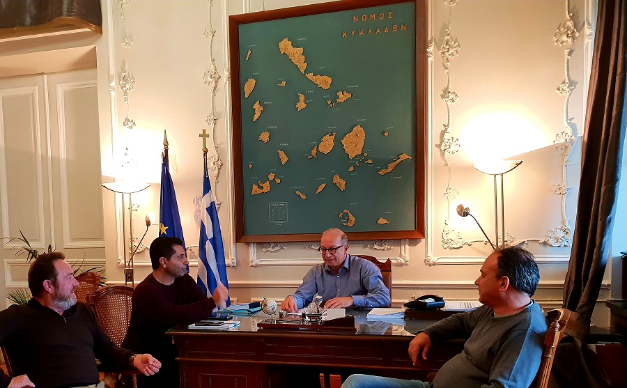 Με τους δημάρχους Κύθνου κ. Σταμάτη Γαρδέρη, Σικίνου κ. Βασίλη Μαράκη και Κιμώλου κ. Κωνσταντίνο Βεντούρη συναντήθηκε χθες στο γραφείο του στην Σύρο ο Αντιπεριφερειάρχης Κυκλάδων κ. Γιώργος Λεονταρίτης.