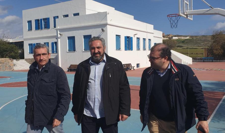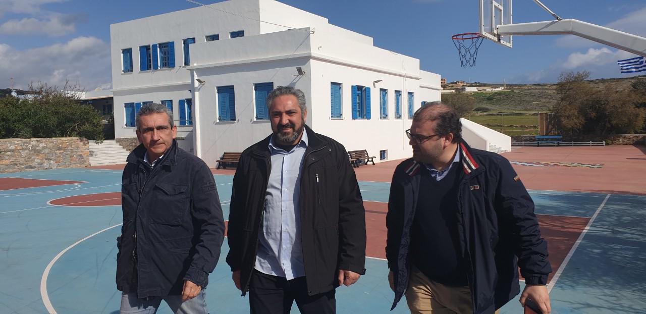 Στην διάρκεια της επίσκεψής του, ο Περιφερειάρχης επισκέφθηκε το σχολείο του νησιού, όπου με δαπάνη της Περιφέρειας και στο πλαίσιο του προγράμματος συντήρησης των σχολικών μονάδων, έγινε αλλαγή κουφωμάτων