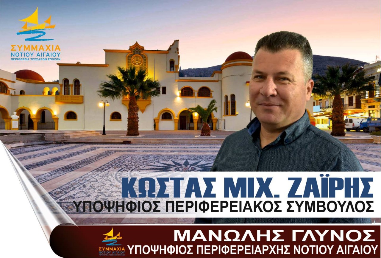 Η «Συμμαχία Νοτίου Αιγαίου» με χαρά ανακοινώνει σήμερα την υποψηφιότητα του Κώστα Ζαΐρη από την Κάλυμνο.