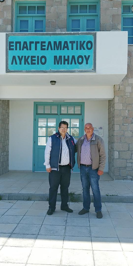 Συνοδευόμενος από τους υποψηφίους του συνδυασμού στην Π.Ε. Μήλου Τσιριγωτάκη Μανώλη (Αυγερινό) και Ζούλια Σοφία, είχε συνάντηση εργασίας με το δήμαρχο Γεράσιμο Δαμουλάκη, συναντήθηκε με τα στελέχη του επαρχείου και με πολίτες του νησιού και επισκέφθηκε τον εργασιακό χώρο, συνομιλώντας με τους εργαζόμενους της Δ.Ε.Η. στη Μήλο. Επισκέφθηκε το ΕΠΑ.Λ. στο οποίο είχε συντελέσει να δημιουργηθεί όταν διετέλεσε γενικός γραμματέας της Π.Ν.Αι. και είχε συνάντηση με τους εκπαιδευτικούς.