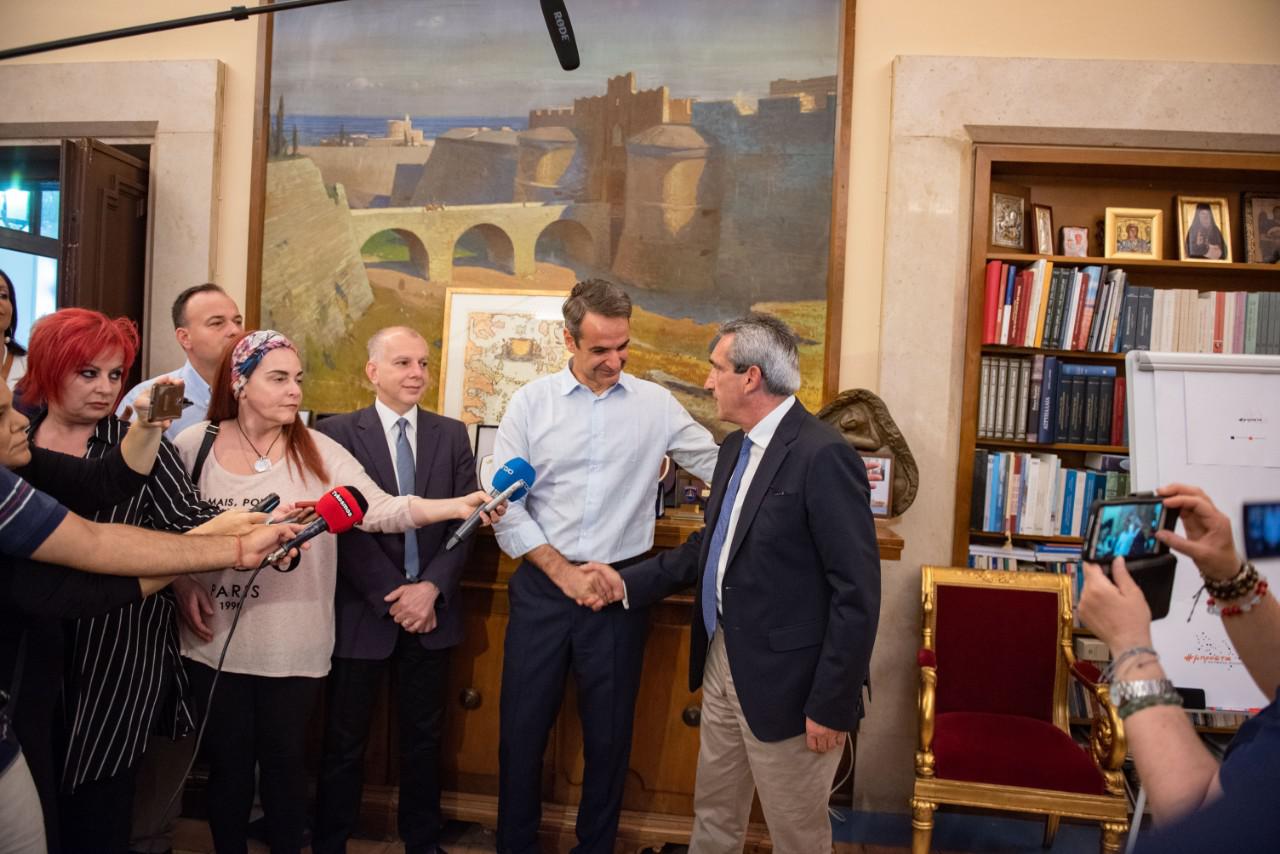 Από την πλευρά του ο Πρόεδρος της Νέας Δημοκρατίας, Κυριάκος Μητσοτάκης συνεχάρη τον κ. Χατζημάρκο και τον κ. Καμπουράκη για την εκλογική επιτυχία τους και σημείωσε ότι θα είναι κοντά στους θεσμούς της τοπικής αυτοδιοίκησης, για να οικοδομήσουν από κοινού τη νέα φωτεινή και αισιόδοξη Ελλάδα: