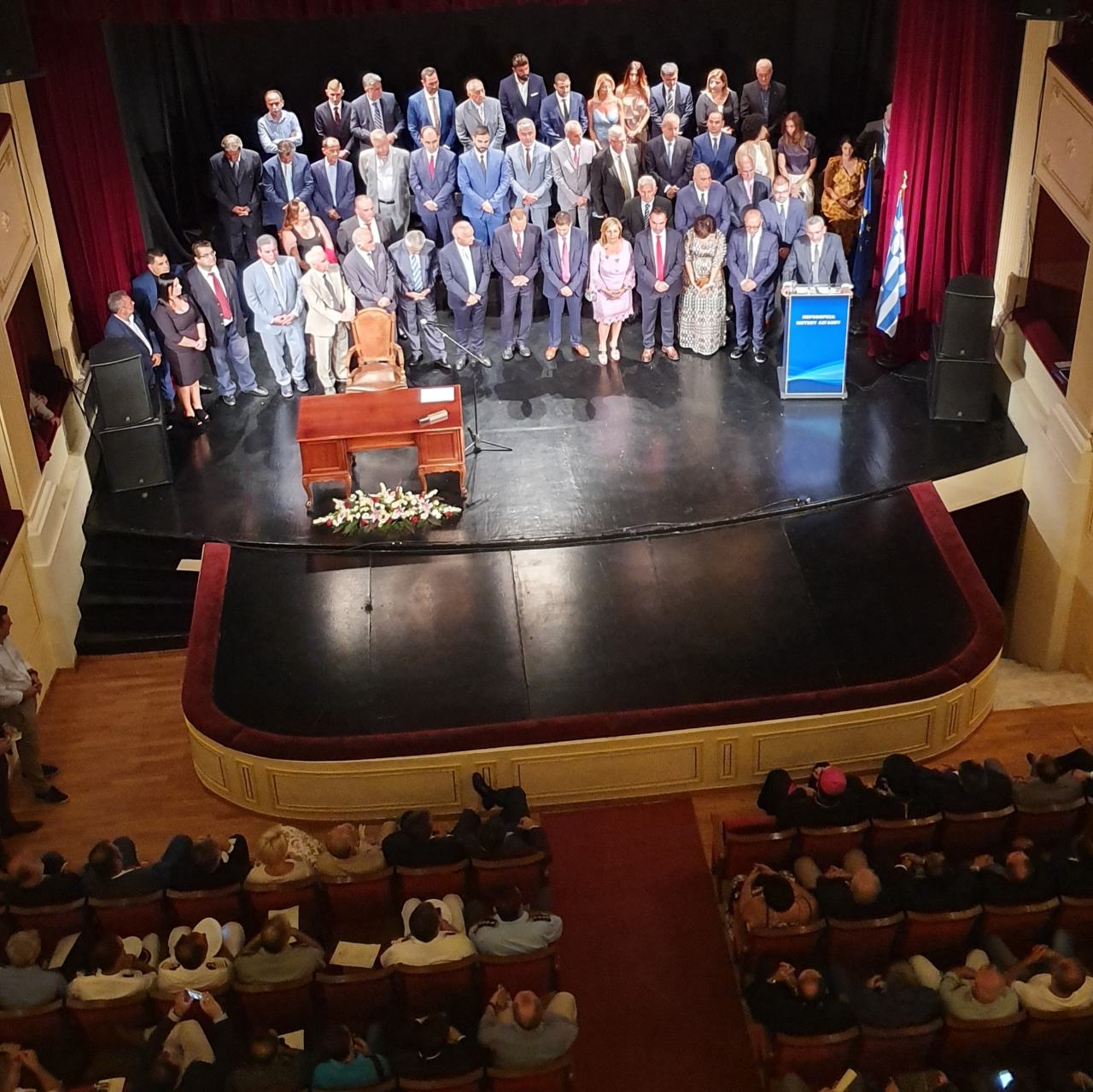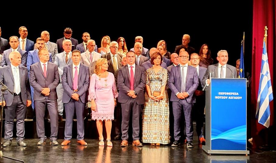 Πραγματοποιήθηκε στο θέατρο “Απόλλων” η τελετή ορκωμοσίας του Περιφερειάρχη Ν. Αιγαίου, Γιώργου Χατζημάρκου και των μελών του νέου Περιφερειακού Συμβουλίου το απόγευμα του Σαββάτου, στο πλαίσιο της καθιερωμένης τελετής, παρουσία κυβερνητικών προσώπων, εκπροσώπων φορέων και Αρχών από τους νομούς Κυκλάδων και Δωδεκανήσου.