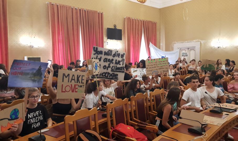 Η πορεία των μαθητών στους δρόμους της πόλης που κατέληξε στην Περιφέρεια, πραγματοποιήθηκε στο πλαίσιο της παγκόσμιας εκστρατείας #fridaysforfuture.