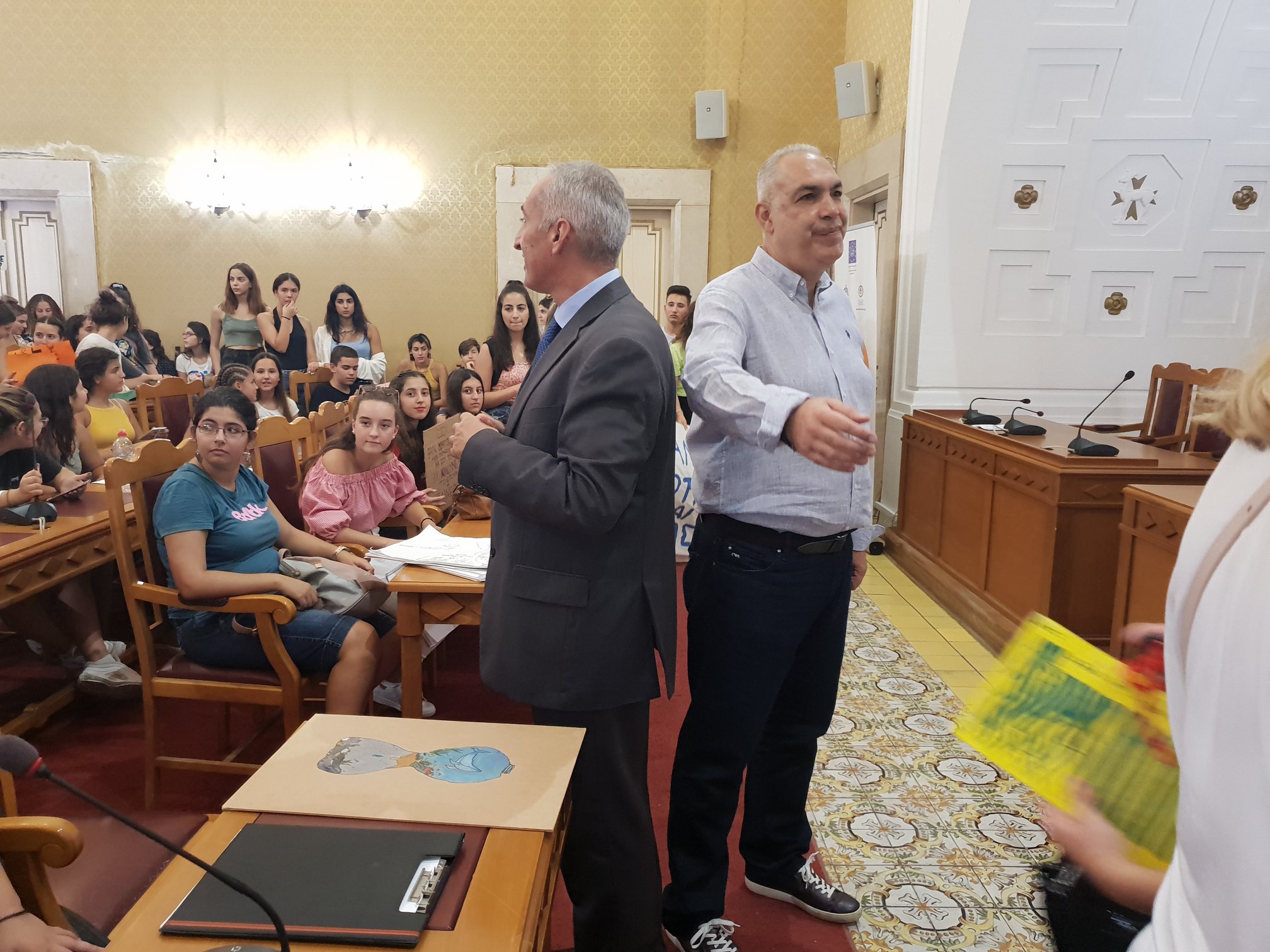 Τους μαθητές από σχολεία της Ρόδου που έλαβαν μέρος σε πορεία ευαισθητοποίησης για το περιβάλλον, δέχθηκαν σήμερα στην Περιφέρεια ο Αντιπεριφερειάρχης Παιδείας , Δια Βίου Μάθησης και Απασχόλησης Δωδεκανήσου, Γιάννης Κρητικός και ο Εντεταλμένος Ευρωπαϊκών Προγραμμάτων, Χρήστος Μπάρδος.