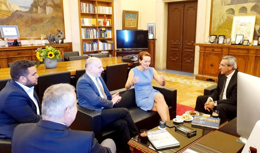 Η συνεργασία του Περιφερειάρχη συνεχίστηκε στο γραφείο του με την Γενική Γραμματέα Ενέργειας του Υπουργείου Ενέργειας και Φυσικών Πόρων, Αλεξάνδρα Σδούκου, με τη συμμετοχή του Δημάρχου Ρόδου, Αντώνη Καμπουράκη, του Εντεταλμένου Τουριστικής Ανάπτυξης Κώστα Χρυσοχοΐδη και του Αντιδημάρχου Οικονομικών, Τηλέμαχου Καμπούρη.