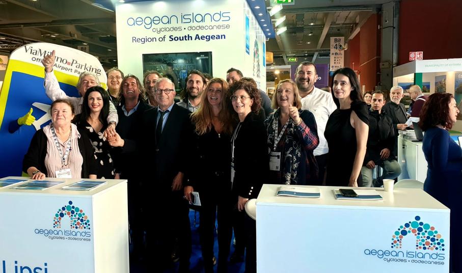 Η Περιφέρεια Νοτίου Αιγαίου, στοχεύοντας στην ενίσχυση της παρουσίας της στην ιταλική αγορά, συμμετέχει με 21 νησιά των Κυκλάδων και της Δωδεκανήσου, προσφέροντας στο κοινό της έκθεσης άπειρες επιλογές διακοπών, αφού κάθε νησί έχει την δική του ξεχωριστή ταυτότητα, γεγονός που καθιστά το Νότιο Αιγαίο έναν από τους πιο ενδιαφέροντες τουριστικούς προορισμούς παγκοσμίως.
