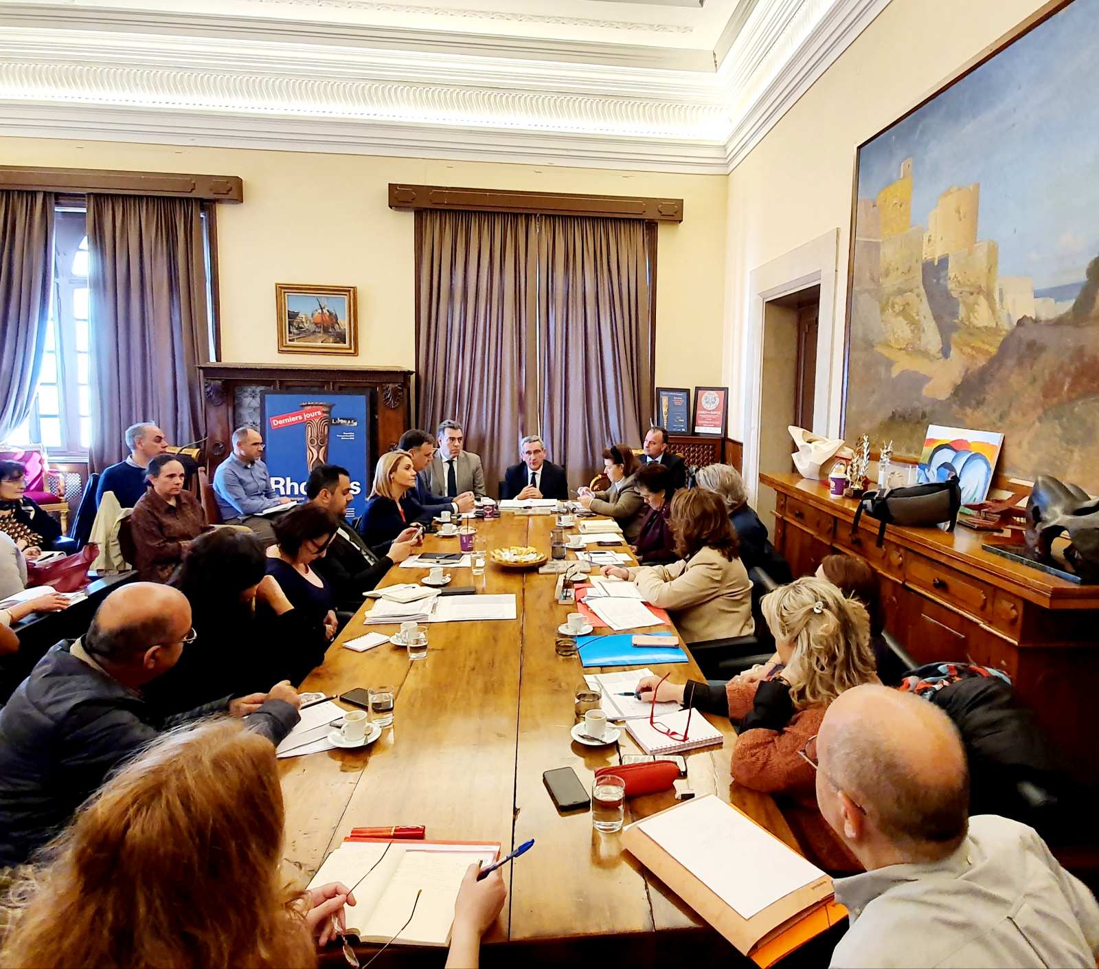 Όσον αφορά τη Μεσαιωνική Πόλη, ειδική σύσκεψη πραγματοποιήθηκε την Κυριακή, στο γραφείο του Δημάρχου Ρόδου, Αντώνη Καμπουράκη, με αντικείμενο τη νέα προγραμματική σύσκεψη. Όπως και χθες ανακοινώθηκε, στην κοινή συνέντευξη Τύπου της Υπουργού Πολιτισμού, του Περιφερειάρχη Νοτίου Αιγαίου και του Δημάρχου Ρόδου, διαπιστώθηκε η απόλυτη συμφωνία και συναντίληψη όσον αφορά το περιεχόμενο και τον στόχο της νέας Προγραμματικής Σύμβασης, η οποία δεν πρέπει να είναι απλώς μια λίστα έργων, αλλά να συμπεριλαμβάνει και κανονισμό λειτουργίας της Μεσαιωνικής Πόλης, που να διασφαλίζει την βιώσιμη ανάπτυξη, την βιώσιμη και ποιοτική καθημερινότητα, καθώς και την υψηλή αισθητική μιας ζώσας πόλης που είναι ταυτόχρονα και μνημείο παγκόσμιας πολιτιστικής κληρονομιάς της UNESCO, γεγονός που, όπως τόνισε η κα Μενδώνη, προσδίδει στη Μεσαιωνική Πόλη προστιθέμενη αξία αλλά δημιουργεί και μείζονες υποχρεώσεις.