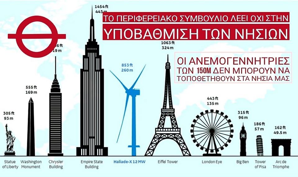 “Χωροθέτηση ζητήσαμε και δυστυχώς, δεν μας άκουσε κανείς. Η Περιφέρεια Ν. Αιγαίου με την αριθμ. 154/ 2019 ομόφωνη απόφαση του Περιφερειακού Συμβουλίου, ζήτησε αναστολή οποιασδήποτε αδειοδότησης και εργασιών αναφορικά με τα αιολικά πάρκα, μέχρι να γίνει ένα ειδικό χωροταξικό σχέδιο προκειμένου να υπάρχει μία δίκαιη, εύλογη και αποδεκτή διαβούλευση για τη χωροθέτησή τους σε εθνικό επίπεδο” ανέφερε παρακάτω, λέγοντας ακόμη πως, “Την ύστατη στιγμή, πριν την ψήφιση του νόμου, ο Περιφερειάρχης ζήτησε να προστεθεί στη διαδικασία αδειοδότησης αιολικών πάρκων, στα νησιά της Περιφέρειας Ν. Αιγαίου η δεσμευτική ένδειξη των κατά τόπους αρμοδίων Συμβουλίων Αρχιτεκτονικής”. Ωστόσο, προς απογοήτευση των νησιωτών, όπως επανέλαβε, “Ούτε αυτό προστέθηκε δυστυχώς”.