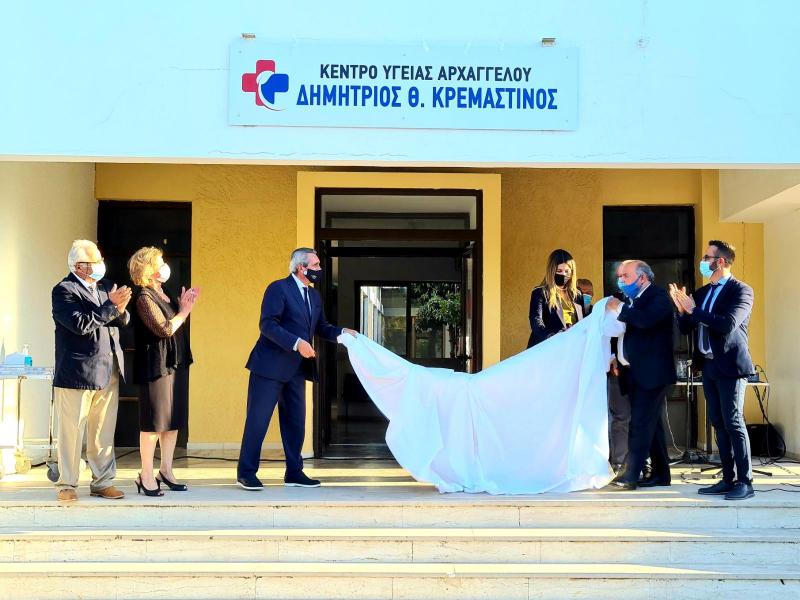 Παρουσία και της συζύγου του, κ. Τζένης Κρεμαστινού, το απόγευμα του Σαββάτου έγινε η ονοματοδοσία του Κέντρου Υγείας Αρχαγγέλου σε «Δημήτρης Κρεμαστινός» και ακολούθησαν τα εγκαίνια της βιβλιοθήκης του 1ου Δημοτικού Σχολείου, δωρεά της συζύγου του αείμνηστου καθηγητή.