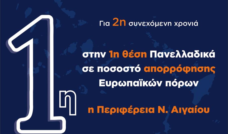Παρά το δυσμενές περιβάλλον που διαμόρφωσε η πανδημία Covid-19 από την αρχή του περασμένου έτους και παρά το συνεχιζόμενο πρόβλημα της δραματικής υποστελέχωσης των Τεχνικών Υπηρεσιών της, η Περιφέρεια Νοτίου Αιγαίου κατόρθωσε, όπως και το 2019,  να αναδειχθεί πρώτη μεταξύ των Περιφερειών της χώρας στην απορρόφηση των ευρωπαϊκών πόρων.