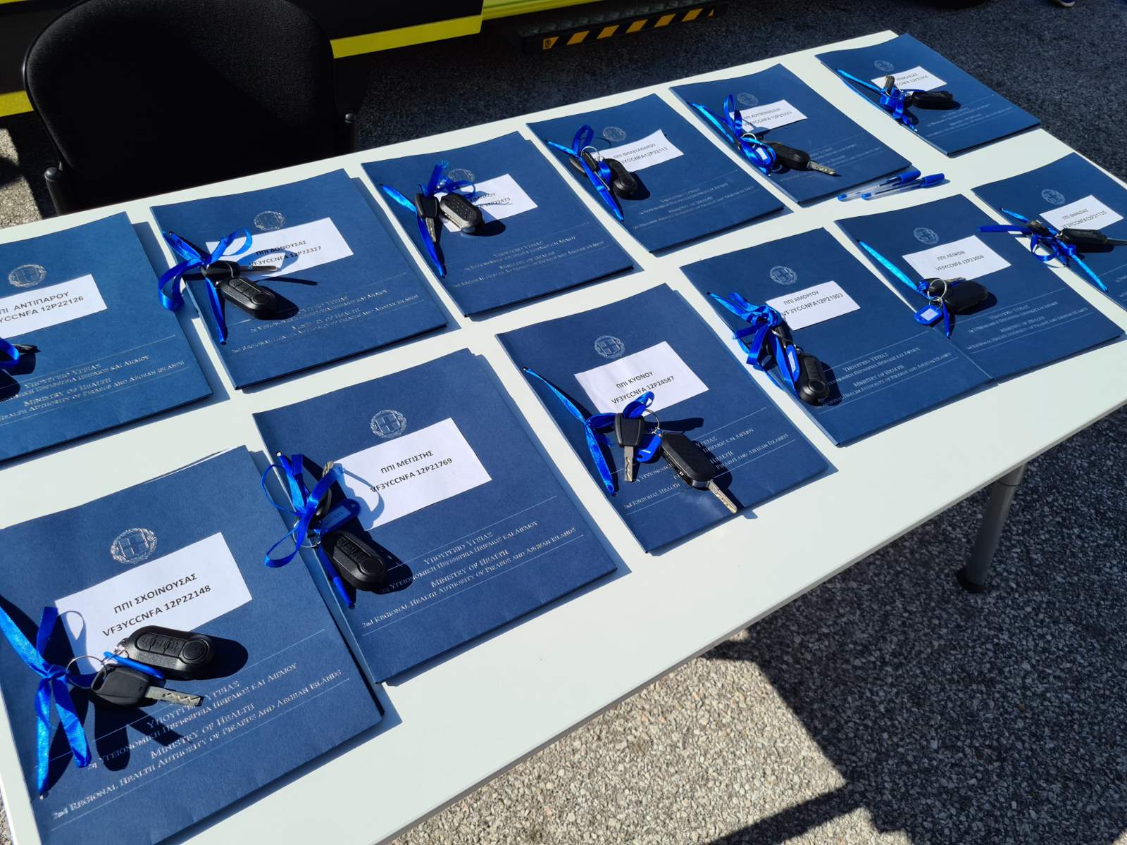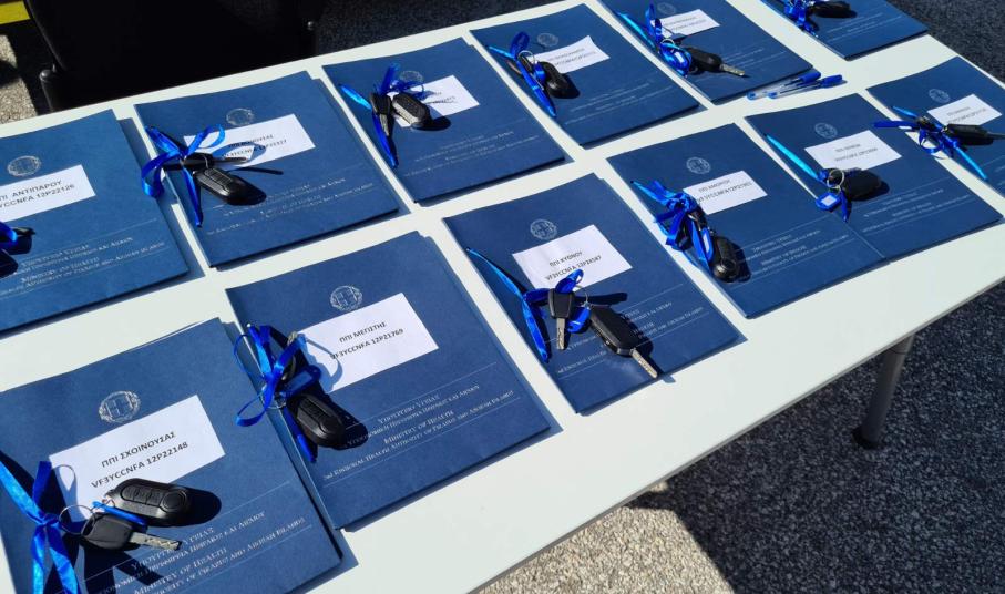 Δώδεκα (12) ασθενοφόρα μικρού όγκου, κατάλληλα να επιχειρούν στα μικρά νησιά του Νοτίου Αιγαίου, ενισχύοντας το στόλο του ΕΚΑΒ που διαδραματίζει κομβικό και κρίσιμο ρόλο στην υγειονομική θωράκιση των νησιωτών, παραδόθηκαν σήμερα στους δημάρχους των αντίστοιχων δώδεκα νησιών, Κυκλάδων και Δωδεκανήσου.