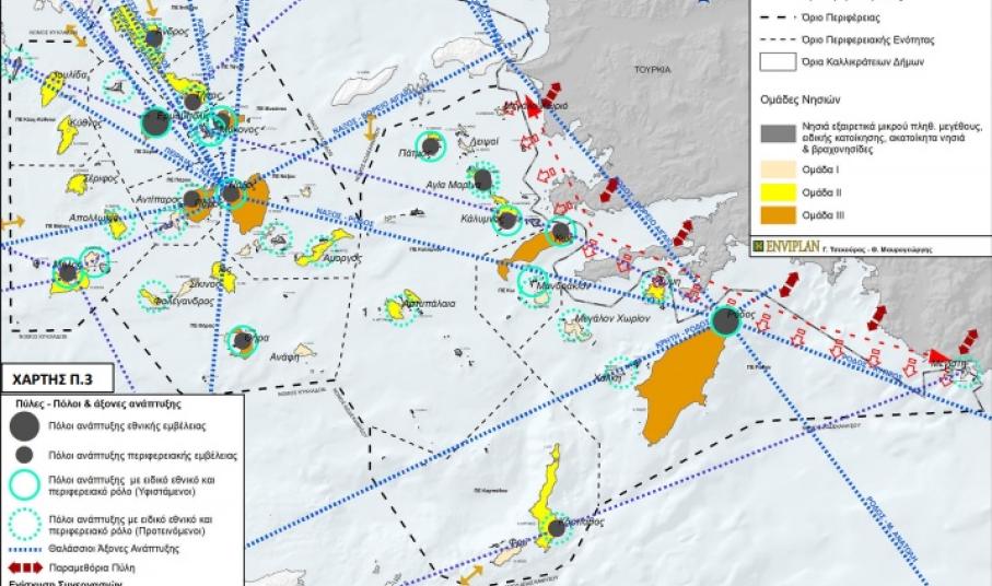 Επίπεδο Καλλικράτειων Δήμων Ομάδας ΙΙΙ: Δήμοι: Σύρου – Ερμούπολης, Θήρας, Μυκόνου, Κω, Νάξου & Μικρών Κυκλάδων, Πάρου, Ρόδου. Κεντρικός στόχος: η συστηματική διαφύλαξη και ενίσχυση του ρόλου (αύξηση ανταγωνιστικότητας) των Δήμων / Οικιστικών πόλων σε εθνικό, ευρωπαϊκό και διεθνές επίπεδο, με την ανάδειξή τους σε κόμβους μεταφορών - επικοινωνιών, πολιτισμού – τουρισμού, έρευνας – καινοτομίας – τεχνολογικής ανάπτυξης / εφαρμογών.
