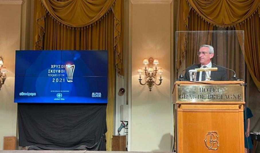 «Μεγάλη η χαρά και η περηφάνια να συμμετέχεις στην τελετή βράβευσης των Χρυσών Σκούφων 2021 και 17 βραβεία να πηγαίνουν σε εστιατόρια των Κυκλάδων και της Δωδεκανήσου. Santoro, Bill & Coo, Alali, Lauda, Cuvee, Selene, Lycabetttus, Hλιοβασίλεμα, Grandma's, Petra, Beef Bar, Kensho, Mαραθιά, Mikrasia Santorini, Mikrasia Mykonos, Naos και Jackie O Beach, είναι τα εστιατόρια νησιών μας που βραβεύτηκαν.