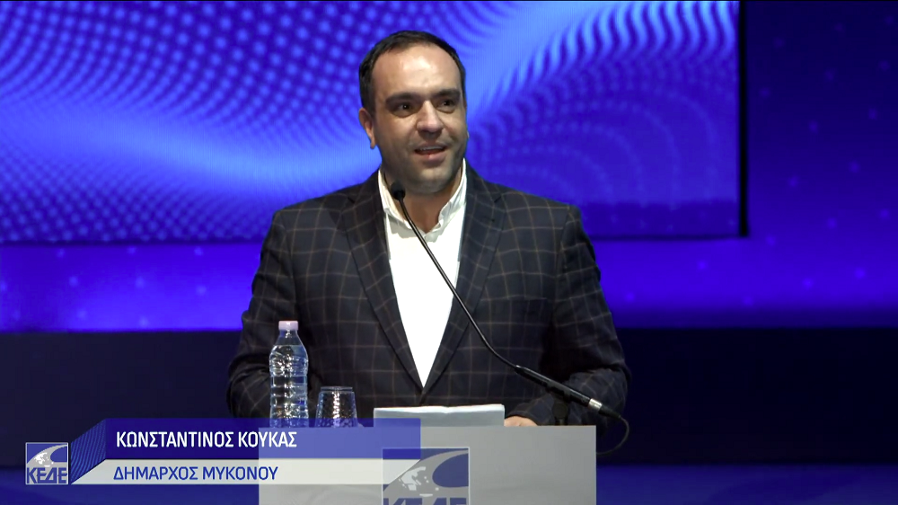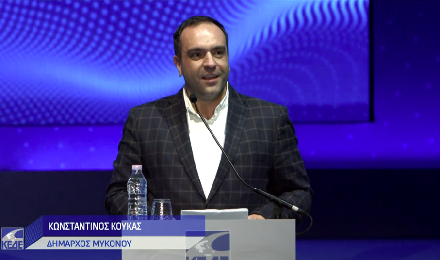 Εκπροσωπώντας επίσης τα νησιά των Κυκλάδων και τον Δήμο Μυκόνου, το βήμα έλαβε και ο Δήμαρχος Μυκόνου και μέλος του Δ.Σ. της ΚΕΔΕ, κ. Κωνσταντίνος Κουκάς.