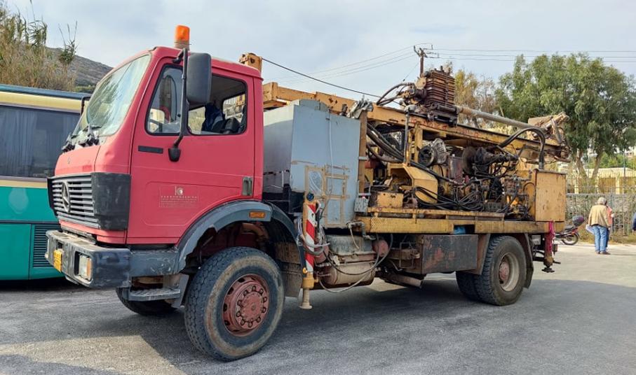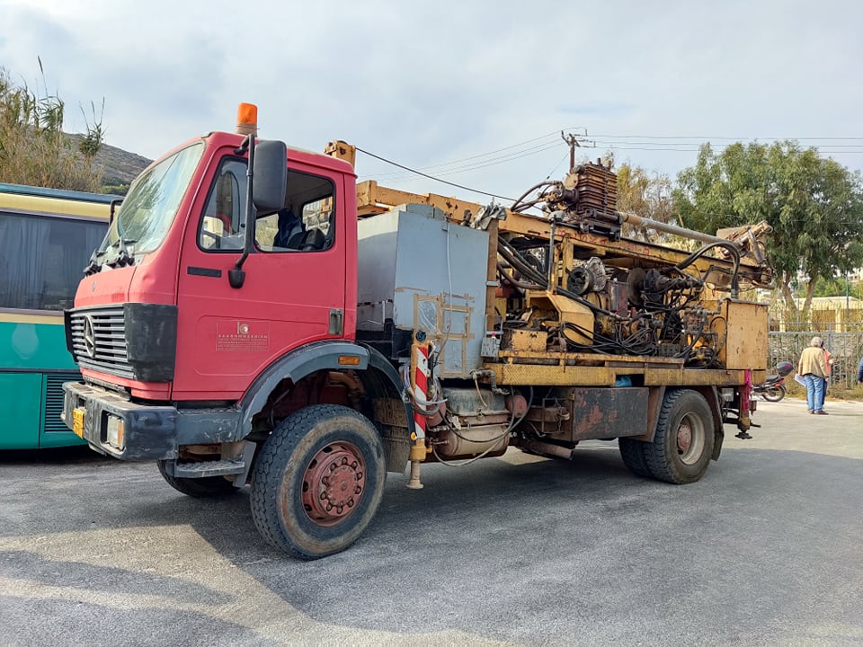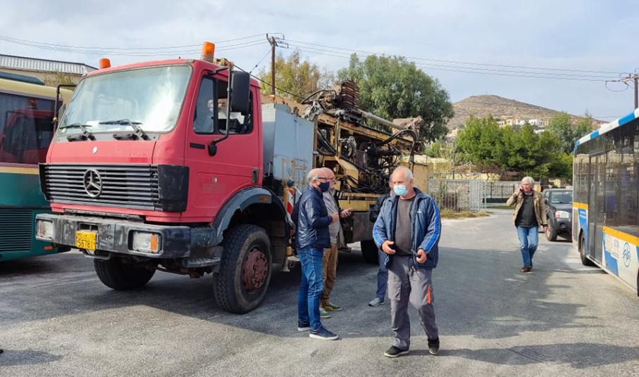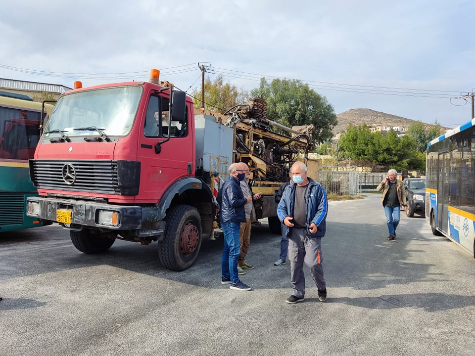 Χθες μεταφέρθηκε στην πρωτεύουσα των Κυκλάδων ειδικό μηχάνημα που πραγματοποιεί τις απαραίτητες γεωτρήσεις στον χώρο που αγοράστηκε από την ΠΝΑι, στην περιοχή του Μάννα