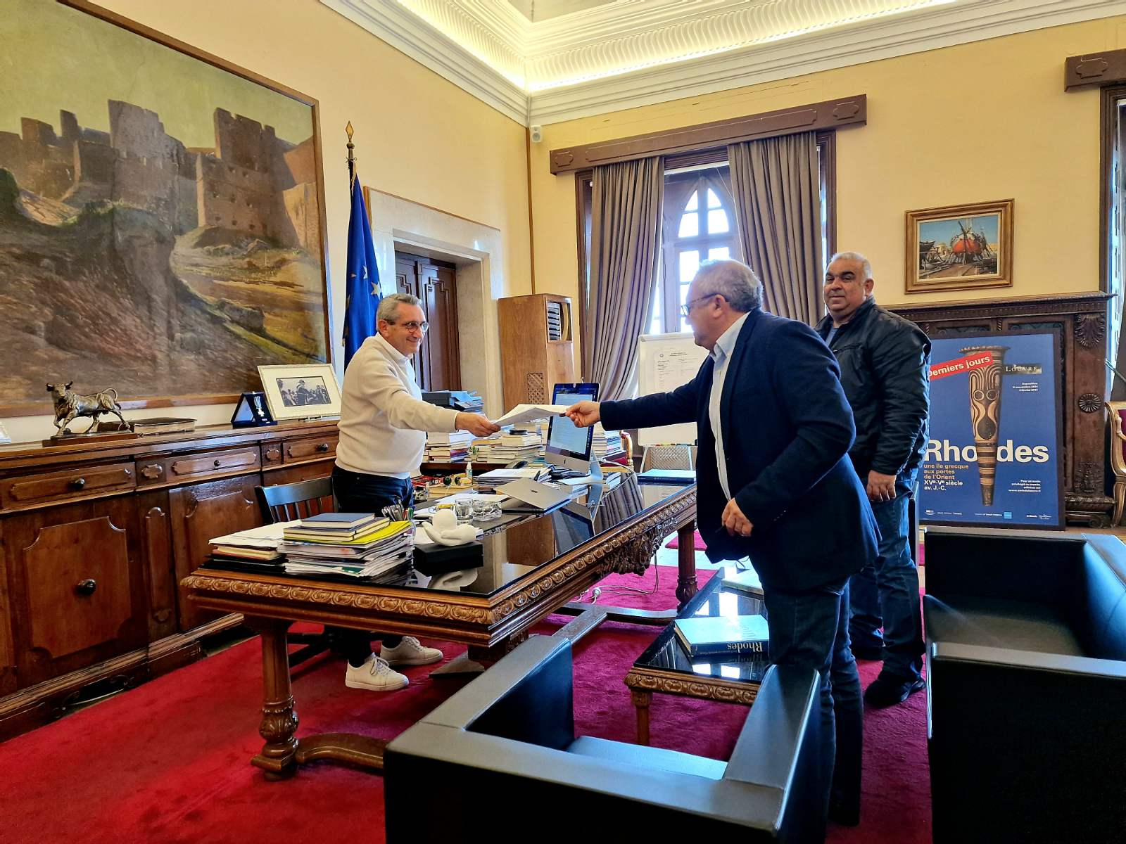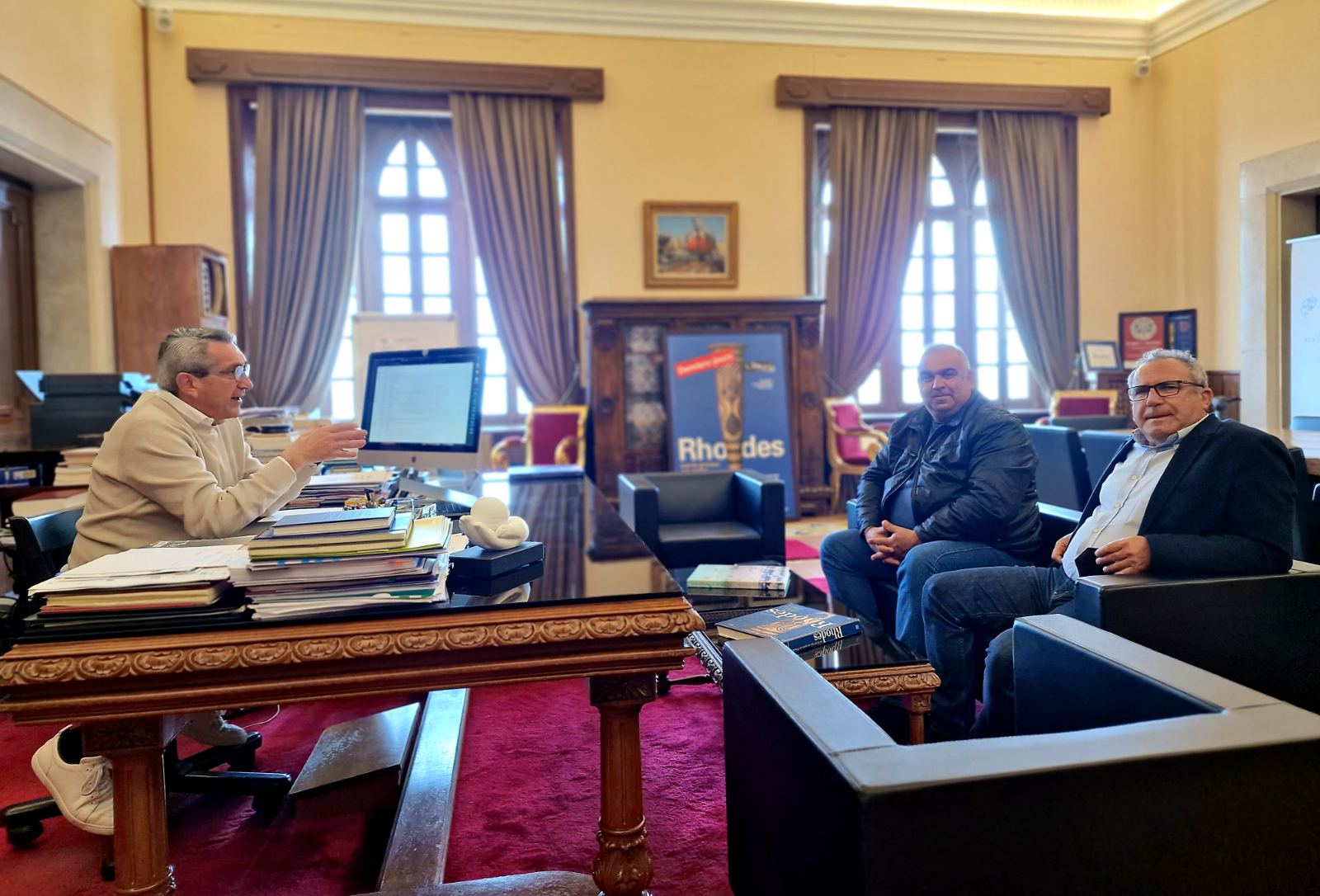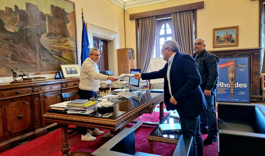 Κατά τη συνάντηση που είχε με τον Πρόεδρο του Συνδέσμου Ιδιοκτητών Ταξί, Θεοδόση Καστανίδη και το μέλος Αντώνη Κάλλα, ο Περιφερειάρχης υπέγραψε την πρόσκληση, με την οποία καλεί τους ιδιοκτήτες Ταξί με έδρα εντός της Περιφέρειας Νοτίου Αιγαίου που ενδιαφέρονται για την αντικατάσταση ΕΔΧ ΤΑΞΙ αυτοκινήτων, με επιβατικά οχήματα έξι (6) έως εννέα (9) θέσεων, να υποβάλουν αίτηση.