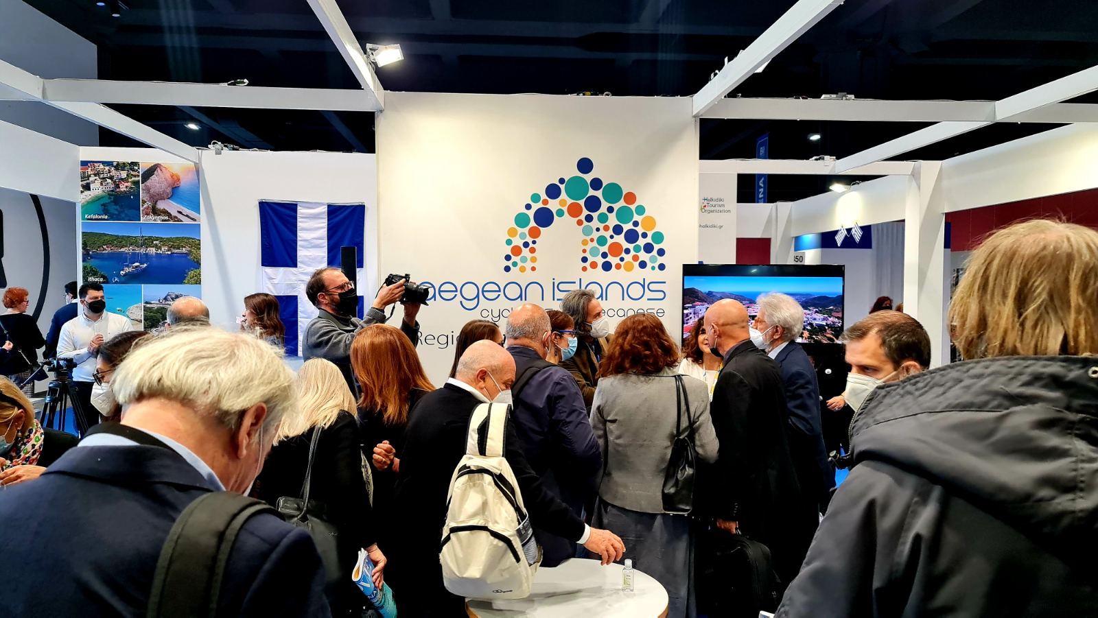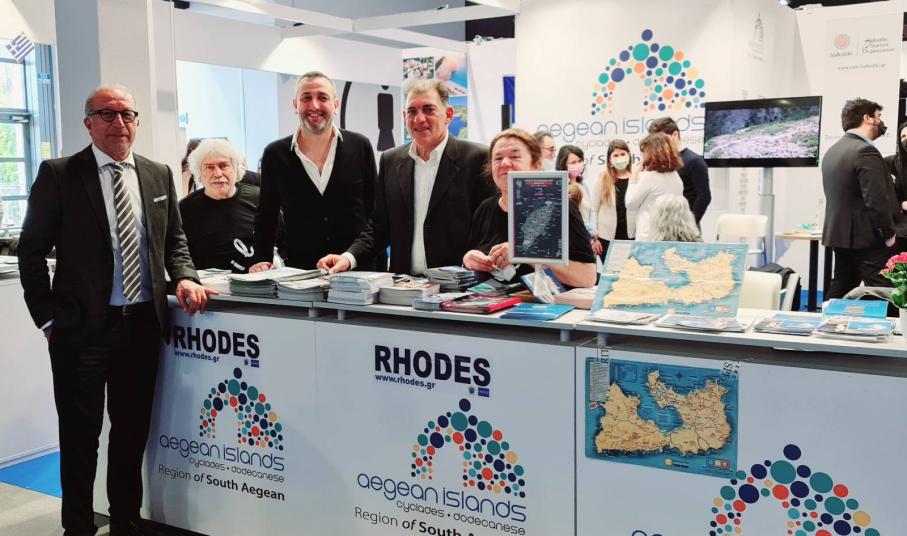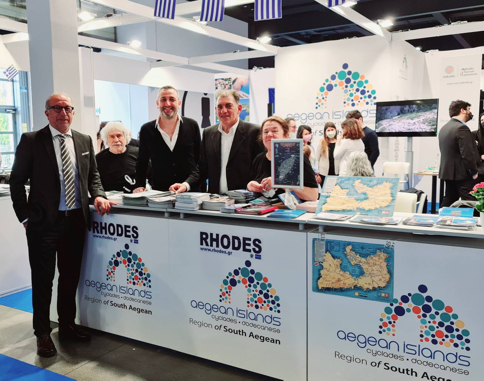 Στην ίδια αισθητική και αρχιτεκτονική των τελευταίων ετών, ο προορισμός Νότιο Αιγαίο ήταν εκεί με περίπτερο που διέθεσε σε δήμους και φορείς από Κυκλάδες και Δωδεκάνησα για την προβολή τους. Όπως συμβαίνει πάντα με τις εκθέσεις, το Νότιο Αιγαίο άνοιξε την πόρτα στους δήμους προσκαλώντας αυτούς που ενδιαφέρονται να συμμετέχουν, όσο δυναμικά οι ίδιοι επιλέξουν, δια των εκπροσώπων τους και με υλικό branding παρέχοντάς τους χωρίς κόστος τη δυνατότητα να «συνομιλήσουν» με μια από τις κορυφαίες για τα νησιά μας αγορές.