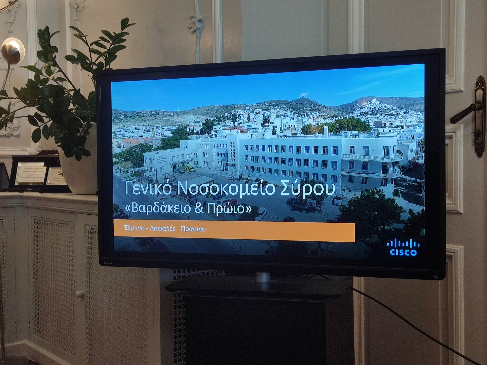 Παρακάτω ακολουθεί η παρουσίαση του προγράμματος ψηφιακού μετασχηματισμού του Νοσοκομείου Σύρου, η οποία έγινε από το αρμόδιο πρόσωπο της CISCO, Νίκο Λαμπρογιώργο.