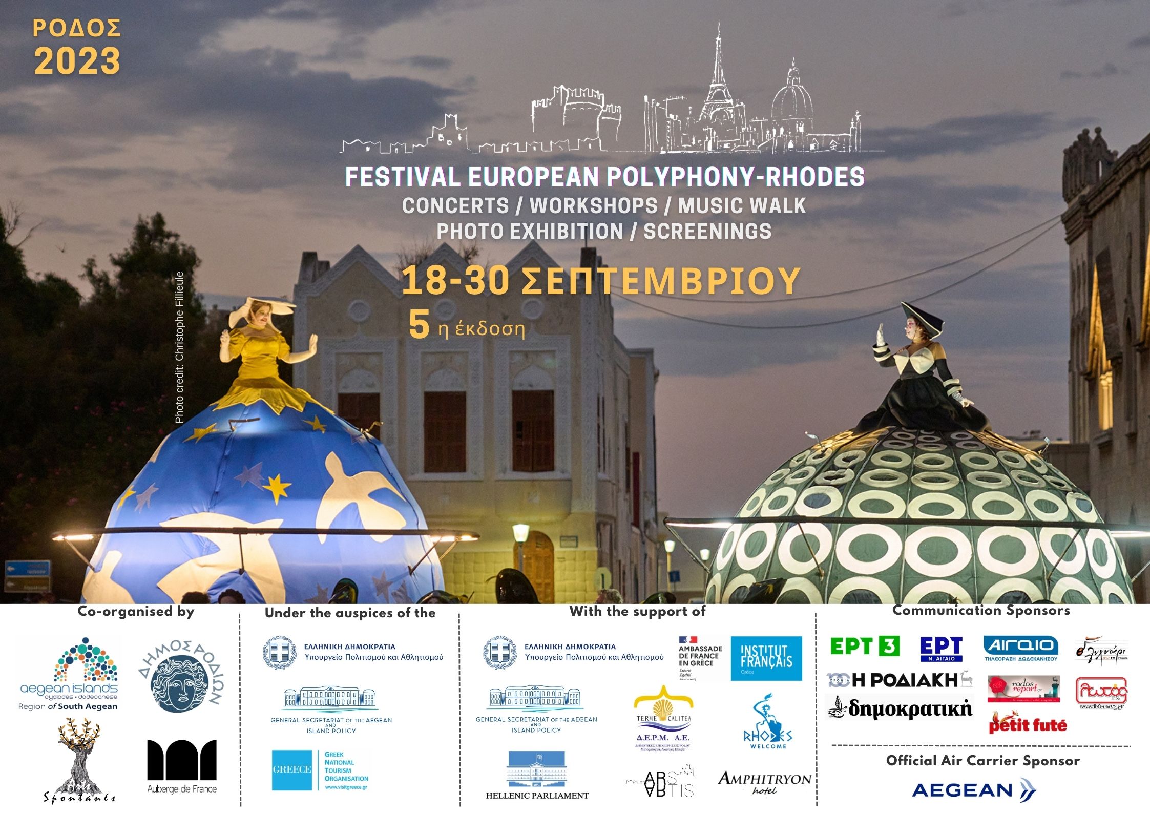 Για να ζήσετε μοναδικές καλλιτεχνικές εμπειρίες ανακαλύπτοντας την μεσαιωνική πόλη της Ρόδου, σας προσκαλούμε στο 5ο Διεθνές Φεστιβάλ Ευρωπαϊκής Πολυφωνίας που θα πραγματοποιηθεί από τις 18 έως τις 30 Σεπτεμβρίου 2023.