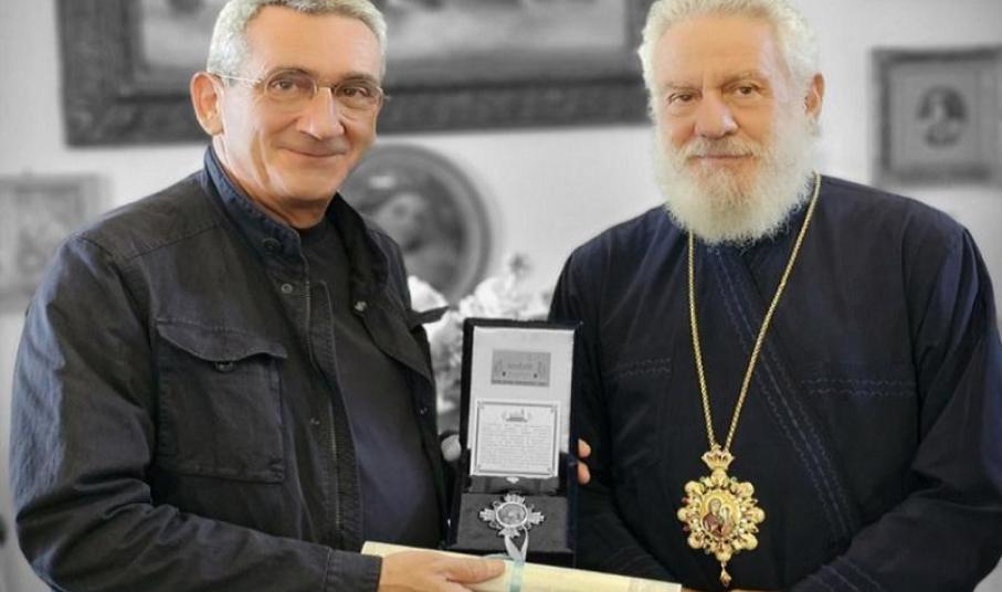 16/8: Το μετάλλιο για τα 200 χρόνια από την εύρεση της Ιερής Εικόνας της Παναγίας στην Τήνο στον Γ. Χατζημάρκο, από τον μητροπολίτη Σύρου, Δωρόθεο Β΄.
