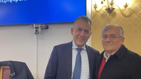 Στη Ρόδο βρέθηκε ο Αναπληρωτής Υπουργός Αθλητισμού κ. Γιάννης Βρούτσης και στο πλαίσιο των συναντήσεων με σωματεία και αθλητικούς παράγοντες του νησιού, συναντήθηκε με τον Αντιπρόεδρο της Οργανωτικής Επιτροπής του Μαραθωνίου Ρόδου και Πρόεδρο της ΕΑΣ ΣΕΓΑΣ Δωδεκανήσου, Βασίλη Ζήκα.