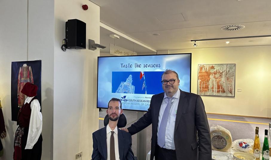 Στην εβδομάδα Γαστρονομίας και Παράδοσης στο Ευρωπαϊκό Κοινοβούλιο, το Νότιο Αιγαίο εκπροσώπησε ο Περιφερειακός Σύμβουλος και Έπαρχος Νάξου και Μικρών Κυκλάδων, Ιωάννης Μαργαρίτης.
