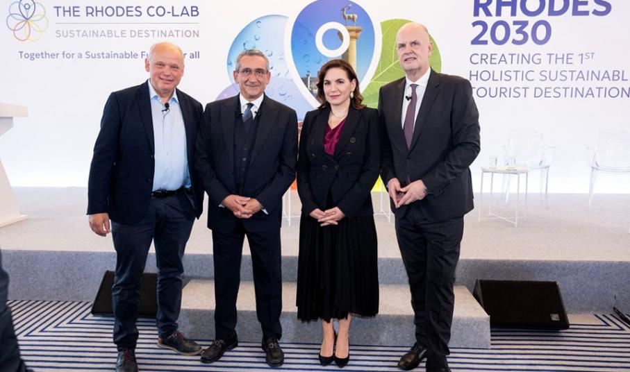 Τον ολιστικό μετασχηματισμό της Ρόδου σε έναν βιώσιμο τουριστικό προορισμό παρουσίασαν την Πέμπτη 28 Μαρτίου στο Ξενοδοχείο Grand Hyatt ο Περιφερειάρχης της Περιφέρειας Νοτίου Αιγαίου, κ. Γιώργος Χατζημάρκος, ο Διευθύνων Σύμβουλος του Ομίλου TUI, κ. Sebastian Ebel και ο Πρόεδρος του Ιδρύματος TUI Care Foundation, κ. Thomas Ellerbeck. Πρόκειται για μία εμβληματική πρωτοβουλία που υλοποιείται για πρώτη φορά, όχι μόνο σε εθνικό, αλλά και σε παγκόσμιο επίπεδο, μέσω του προγράμματος «The Rhodes Co-Lab Sustainable Destination».