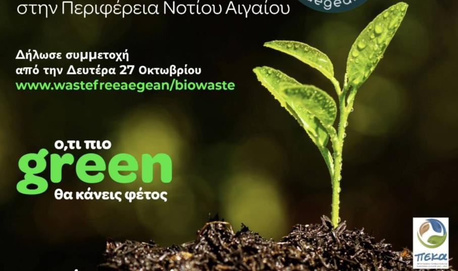 Ό,τι πιο green θα κάνεις φέτος ξεκινά την Δευτέρα 27 Οκτωβρίου 2025, στις 09:00, όπου οι πολίτες της Περιφέρειας Νοτίου Αιγαίου μπορούν να δηλώσουν συμμετοχή στο μεγαλύτερο πρόγραμμα οικιακής κομποστοποίησης και να διεκδικήσουν την απόκτηση του δικού τους οικιακού κομποστοποιητή εντελώς δωρεάν.