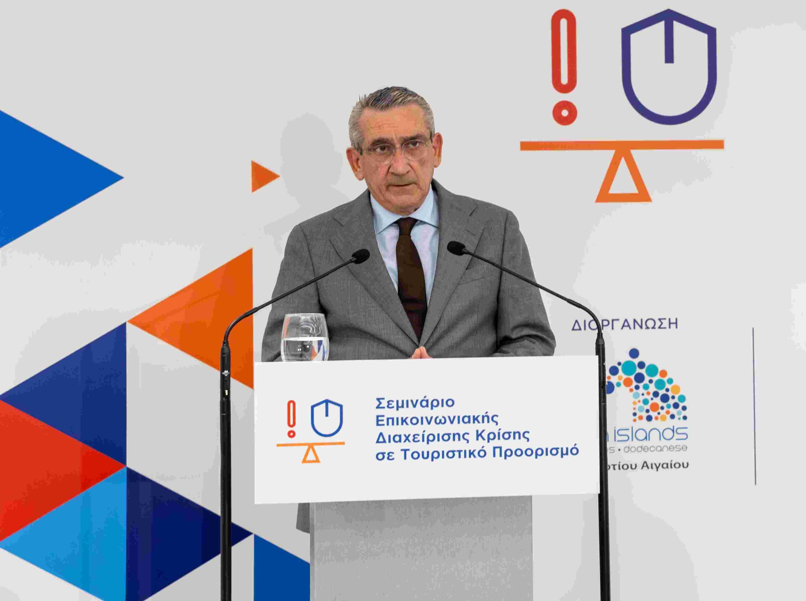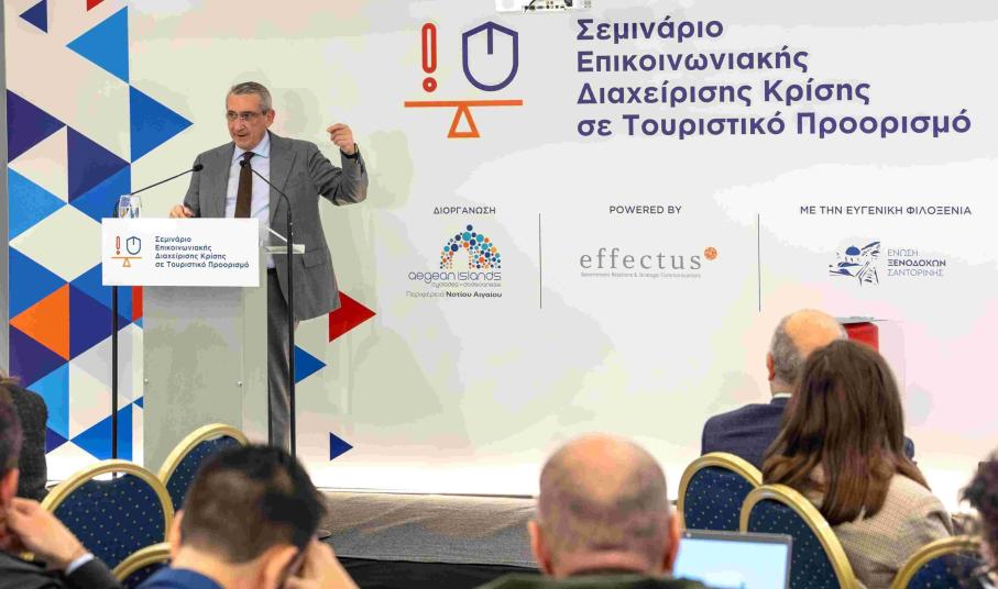 «Η θωράκιση της ανθεκτικότητας και της φήμης των νησιών μας έναντι απειλών που μπορεί να προκύψουν από μια ενδεχόμενη κρίση ή άλλο απρόβλεπτο γεγονός, είναι στρατηγική προτεραιότητα της Περιφέρειας Νοτίου Αιγαίου. Όλα τα τελευταία χρόνια κληθήκαμε να διαχειριστούμε διαδοχικές μεγάλες κρίσεις και όλες επιβεβαίωσαν πως εξίσου σημαντική με την επιχειρησιακή διαχείριση στο πεδίο, είναι και η επικοινωνιακή διαχείριση, τόσο μέσω των ΜΜΕ όσο και από τα μέσα κοινωνικής δικτύωσης. Η φήμη των νησιών μας είναι το πιο πολύτιμο περιουσιακό στοιχείο τους και δεν αφήνουμε τίποτα στην τύχη του. Η σωστή προετοιμασία, το λεπτομερές σχέδιο και οι ρόλοι ευθύνης είναι που κάνουν τη διαφορά σε μια δύσκολη ώρα και είναι τα χαρακτηριστικά που χτίζουν την εμπιστοσύνη, όπως ανέδειξε το Σεμινάριο εκπαίδευσης που πραγματοποιήσαμε. Ευχαριστώ θερμά το ΞΕΕ για τη συνεργασία μας, τον Δήμο Θήρας για τη φιλοξενία και την εταιρεία "effectus", η οποία είχε την ευθύνη της εκπαίδευσης. Όταν ενώνονται ιδέες και δυνάμεις το αποτέλεσμα έχει πάντα αξία και όφελος για όλους».